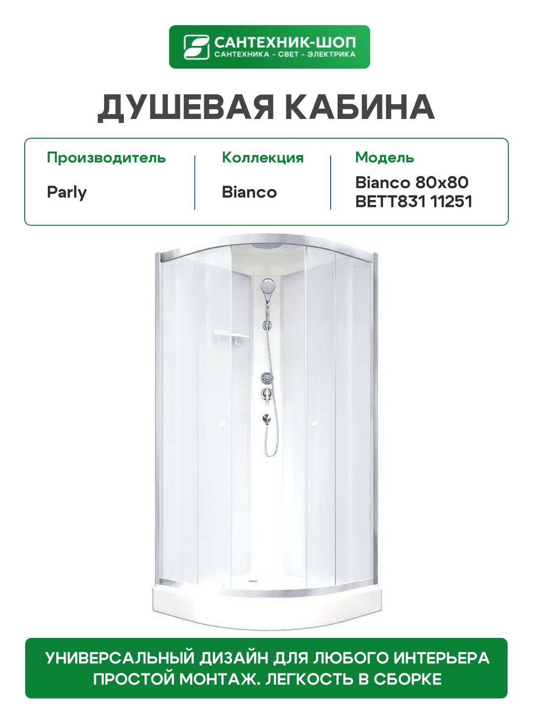 Душевая кабина Parly Bianco 80х80 BETT831 11251 без гидромассажа: сравнение цен, характеристики, фото, актуальное наличие и цены.