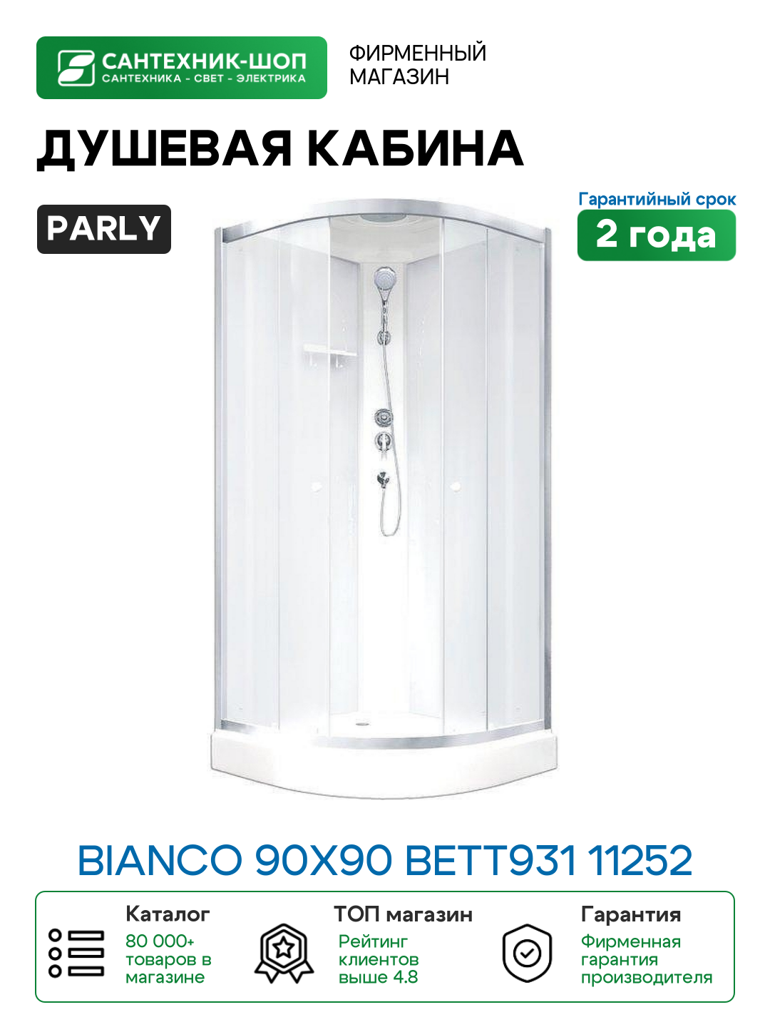Душевая кабина Parly Bianco 90х90 BETT931 11252 без гидромассажа: сравнение цен, характеристики, фото, актуальное наличие и цены.