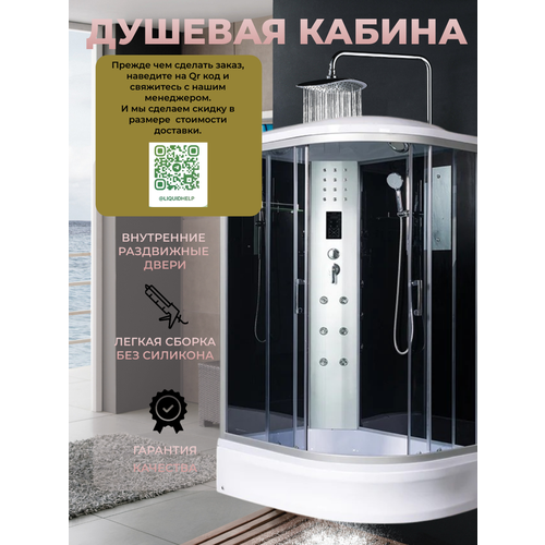 Душевая кабина River Dunay 120/80/24 ТН L высотой 210 см. С крышей, ассиметричной формы. Левый угол установки. Монтаж без силикона. Профиль алюминий. Матовый хром. Раздвижные двери из закаленного стекла, толщиной 4 мм. Экран съемный. Водонепроницаемые уплотнители на дверях. Задняя стенка выполнена из черного тонированного стекла. Интегрированное в панель зеркало. Полочка с металлическим ограничителем. Система принудительной вентиляции. Сенсорный дисплей управления. Современная система гидромассажа. Регулировка интенсивности массажа. Точечная LED-подсветка панели. Встроенное FM-радио. Качественные влагостойкие динамики. Металлический верхний тропический душ с системой легкой очистки. Функциональный латунный смеситель. Регулируемая по высоте душевая штанга. Многофункциональный ручной душ. Усиленный хромированный шланг. Вращение душевого шланга на 360. Обновленные и улучшенные ручки. Акриловый поддон 24 см с антискользящим покрытием. Каркас из нержавеющей стали. Ножки с установкой на неровный пол. Сифон с гидрозатвором и гофротрубой.