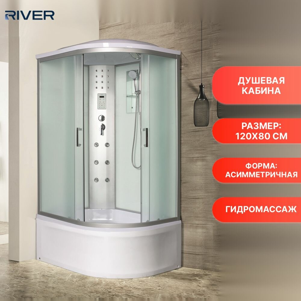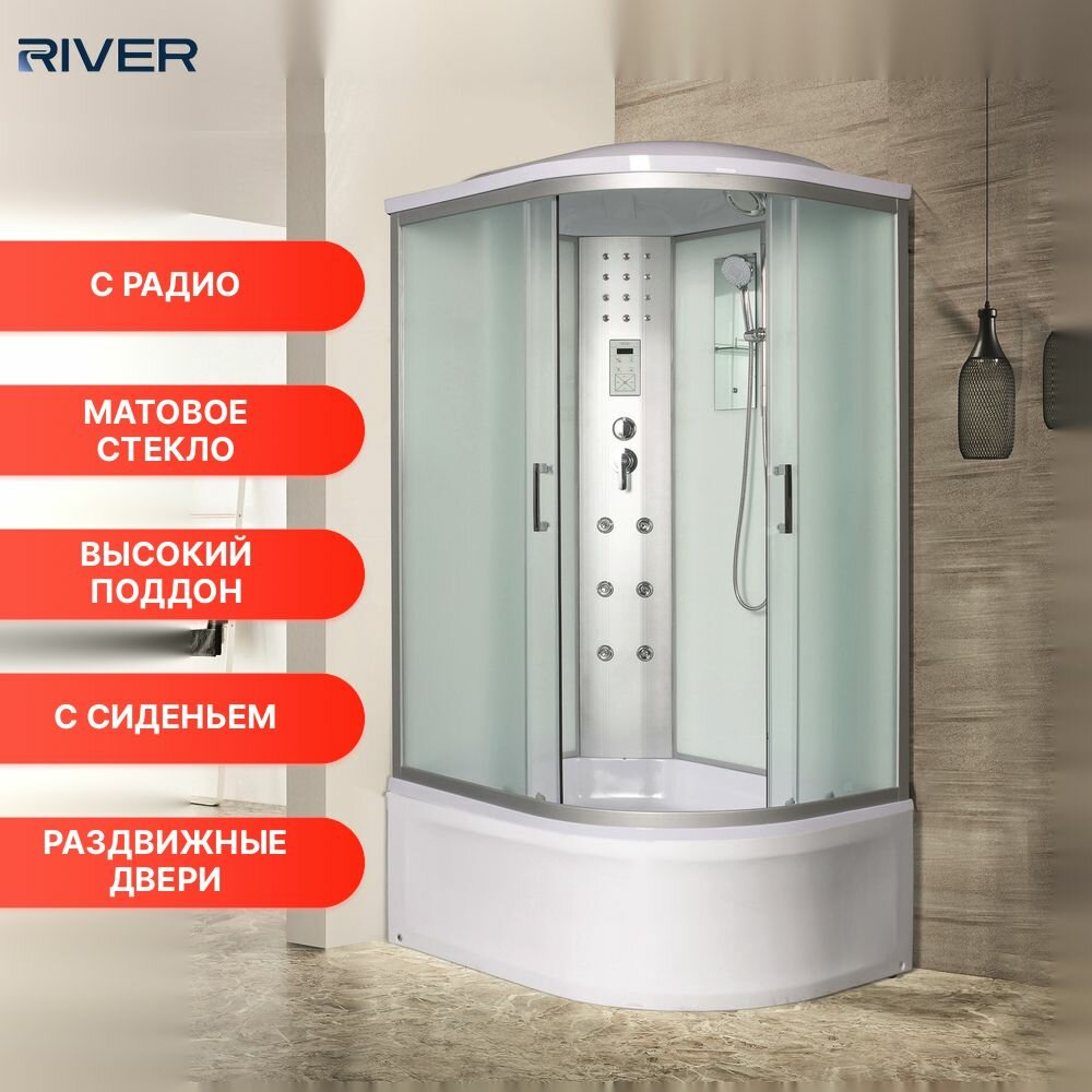 Купить Душевая кабина River Dunay XL 120/80/44 MT L, стекло матовое, профиль серебристый, с крышей, левосторонняя с доставкой по всей России.