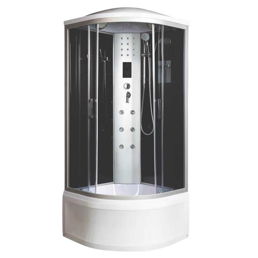 В комплекте поставки: душевая кабина (стекла, профиль, поддон), душевой набор, фурнитура, комплектующие).