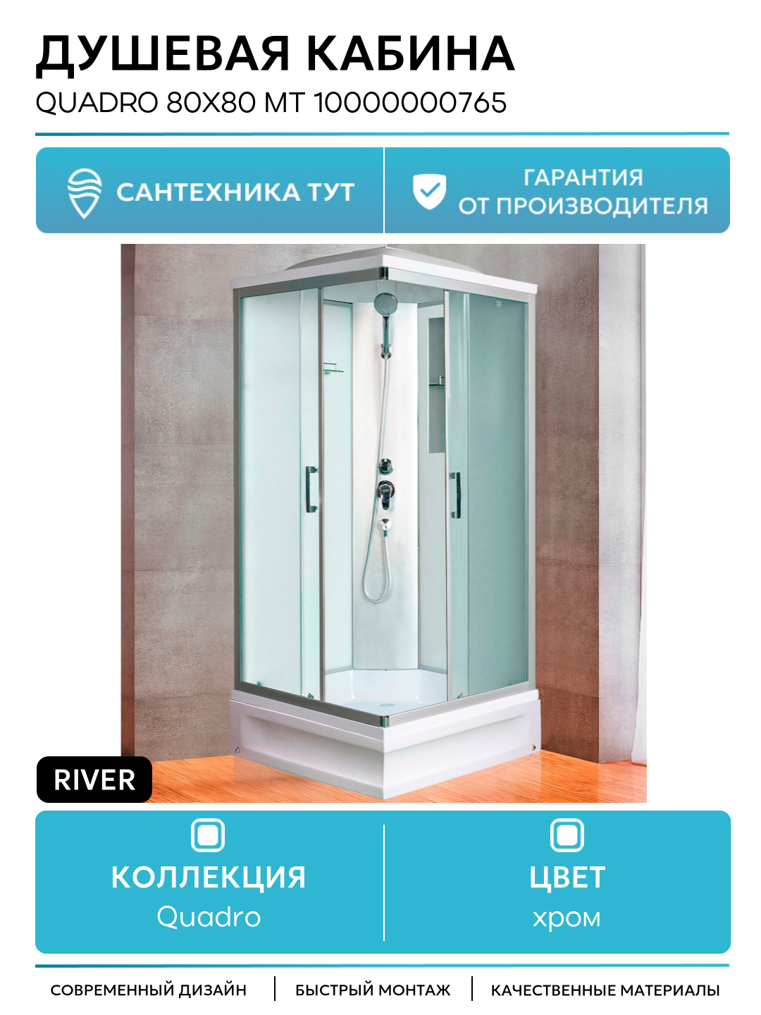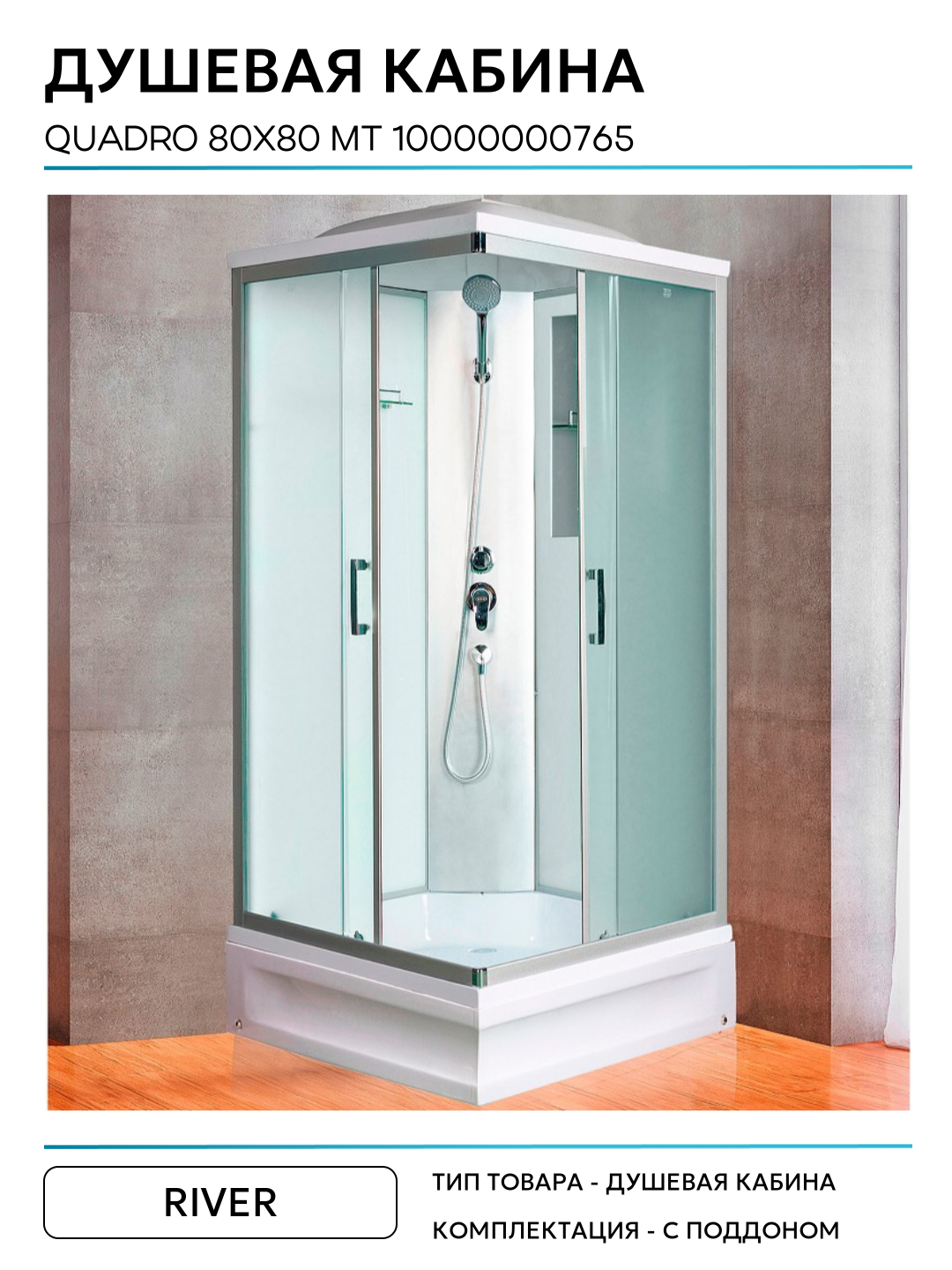 Душевая кабина River Quadro 80x80x26 МТ 10000000765 профиль Матовый хром задняя стенка Белая: сравнение цен, характеристики, фото, актуальное наличие и цены.