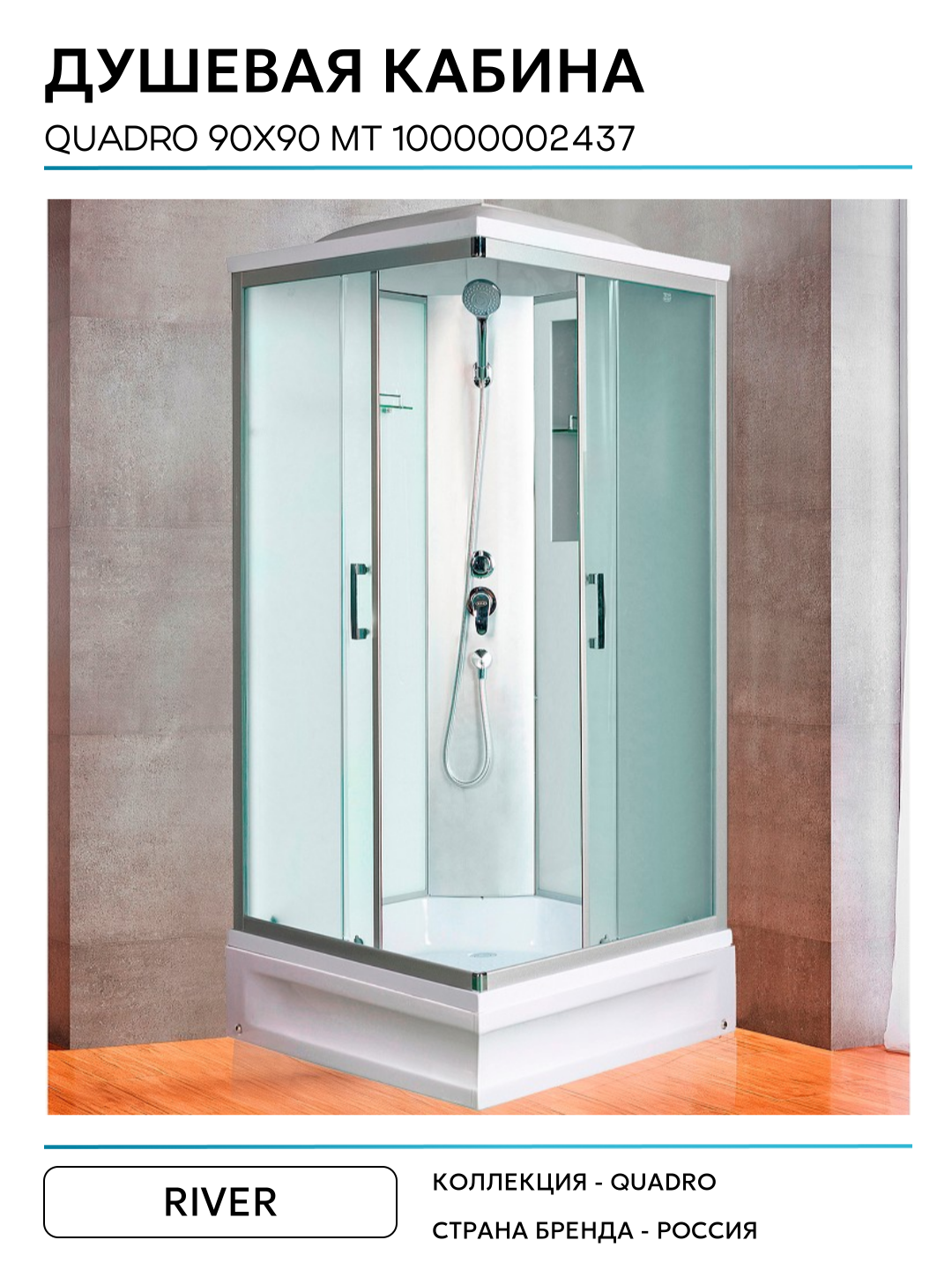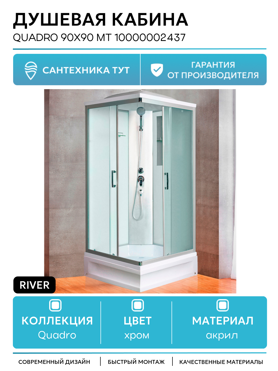 Душевая кабина River Quadro 90×90 МТ 10000002437 с поддоном 90х90 без гидромассажа хром Россия: сравнение цен, характеристики, фото, актуальное наличие и цены.