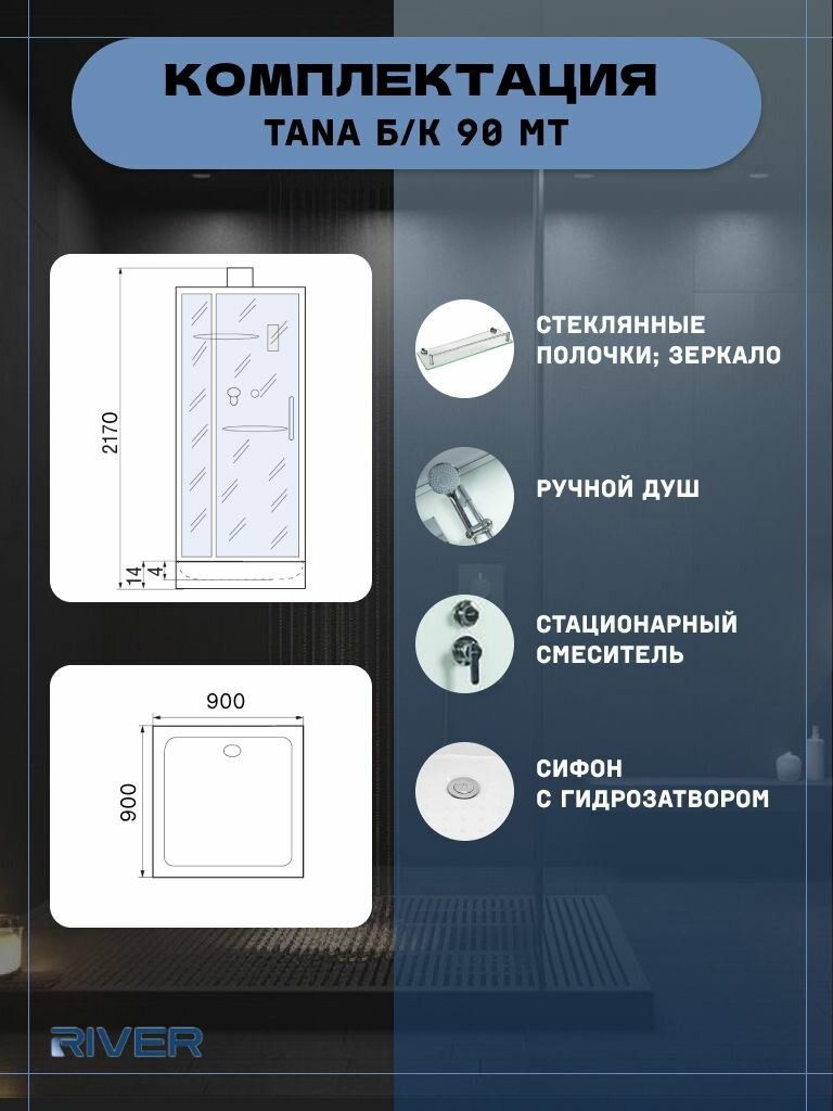 Купить Душевая кабина RIVER TANA Б/К 90 MT (90х90х217) низкий поддон, стекло матовое, без крыши с доставкой по всей России. Душевая кабина RIVER TANA Б/К 90 MT (90х90х217) низкий поддон, стекло матовое, без крыши: сравнение цен, характеристики, фото, актуальное наличие и цены.