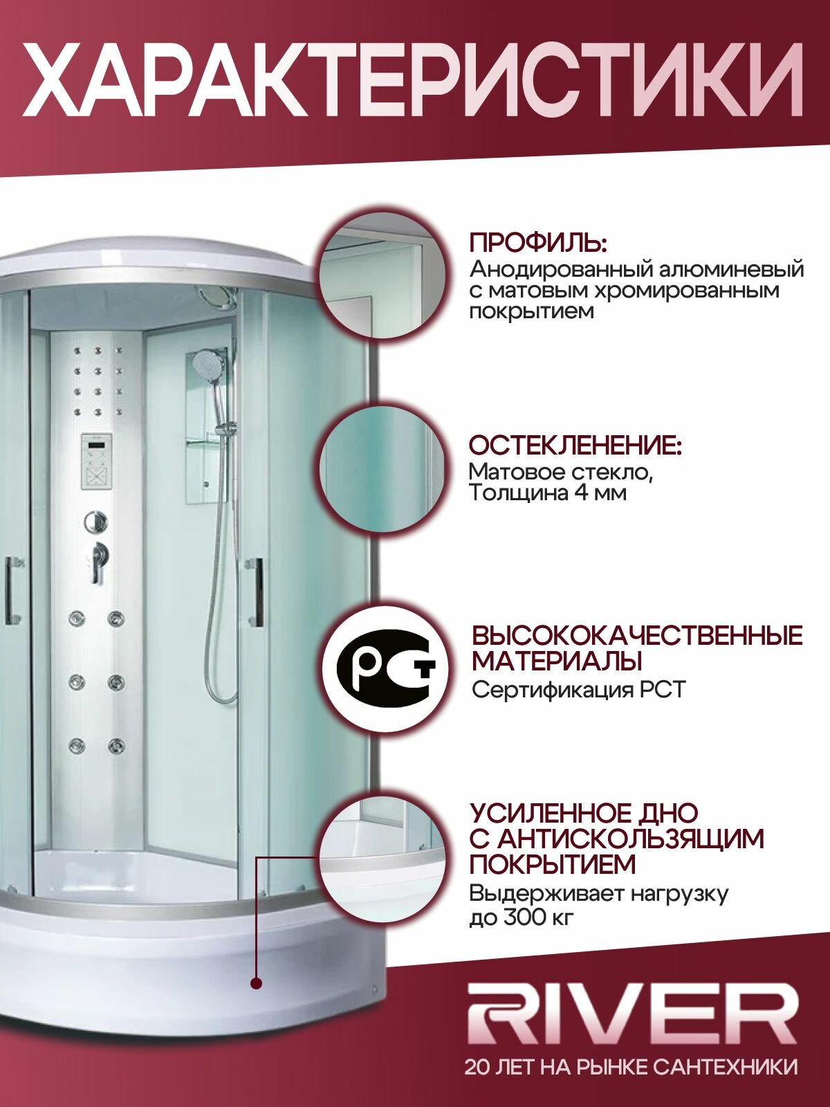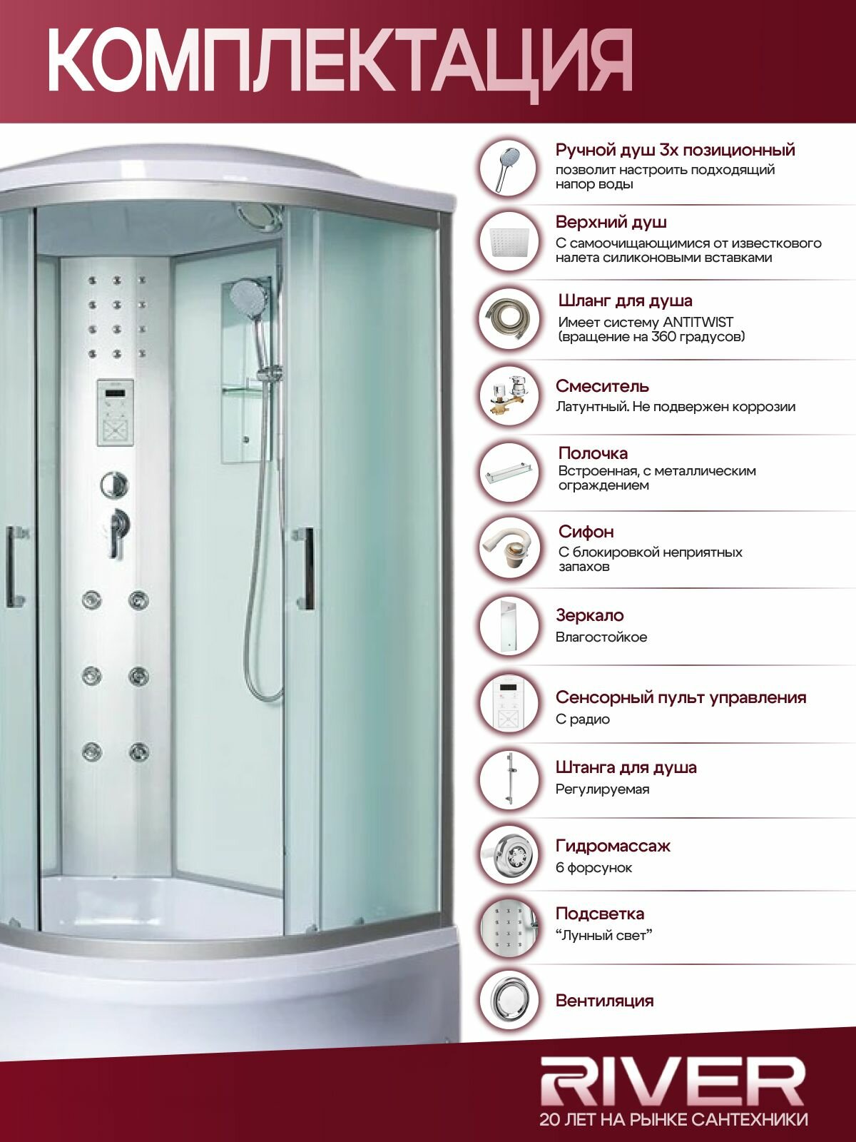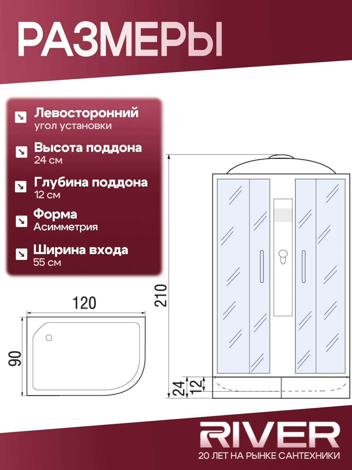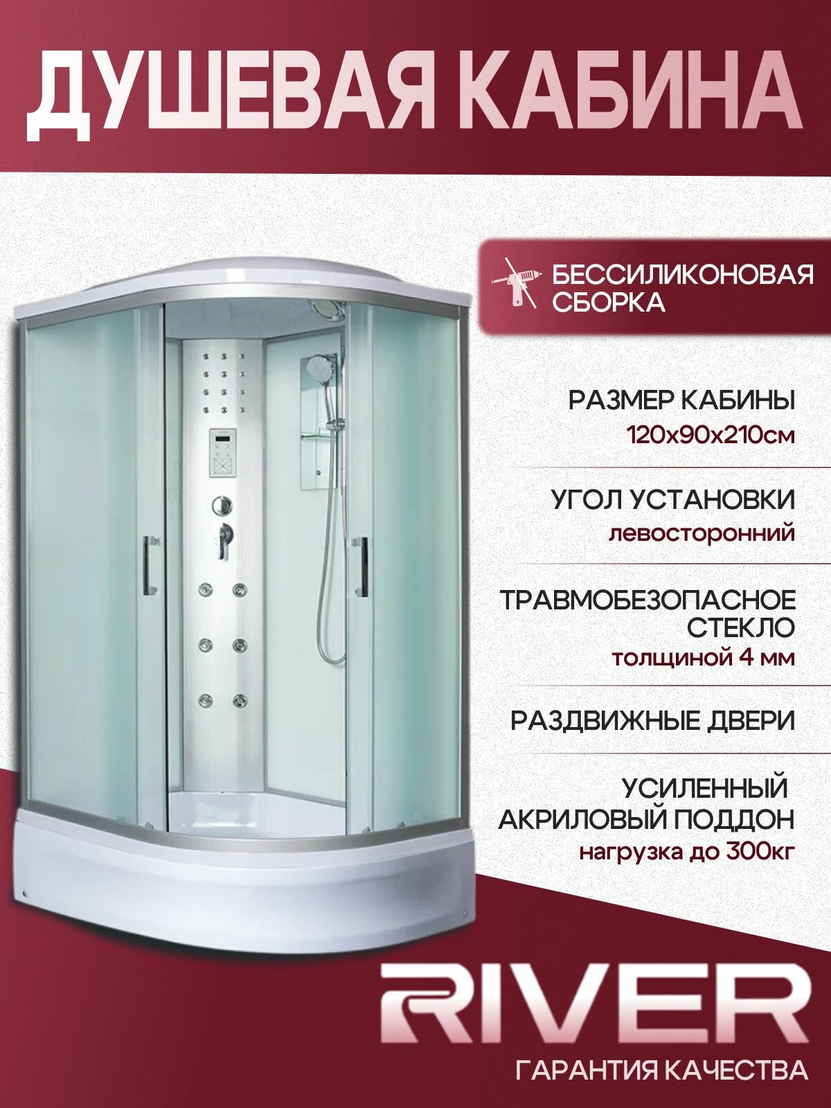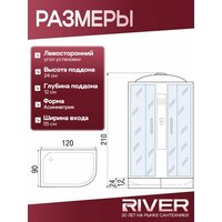 Душевая кабина с гидромасажем RIVER DUNAY 120/90/24 МТ L, (120х90х210 см), средний поддон, матовое стекло: сравнение цен, характеристики, фото, актуальное наличие и цены.