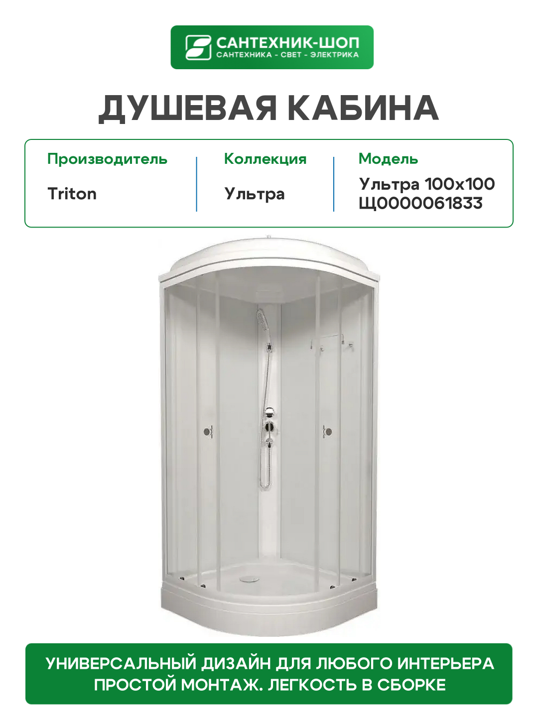 Душевая кабина Triton Ультра 100x100 Щ0000061833 без гидромассажа