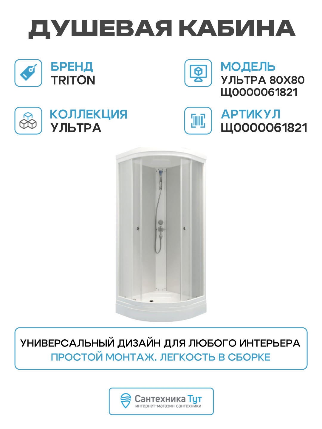 Душевая кабина Triton Ультра 80x80 Щ0000061821 без гидромассажа