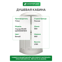 Душевая кабина Triton Ультра 90x90 Щ0000061843 без гидромассажа