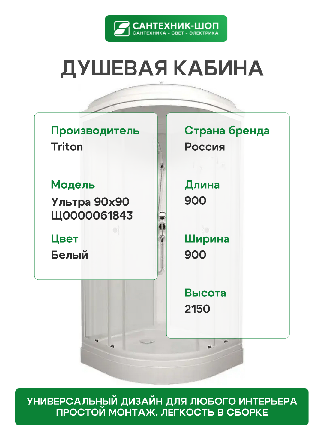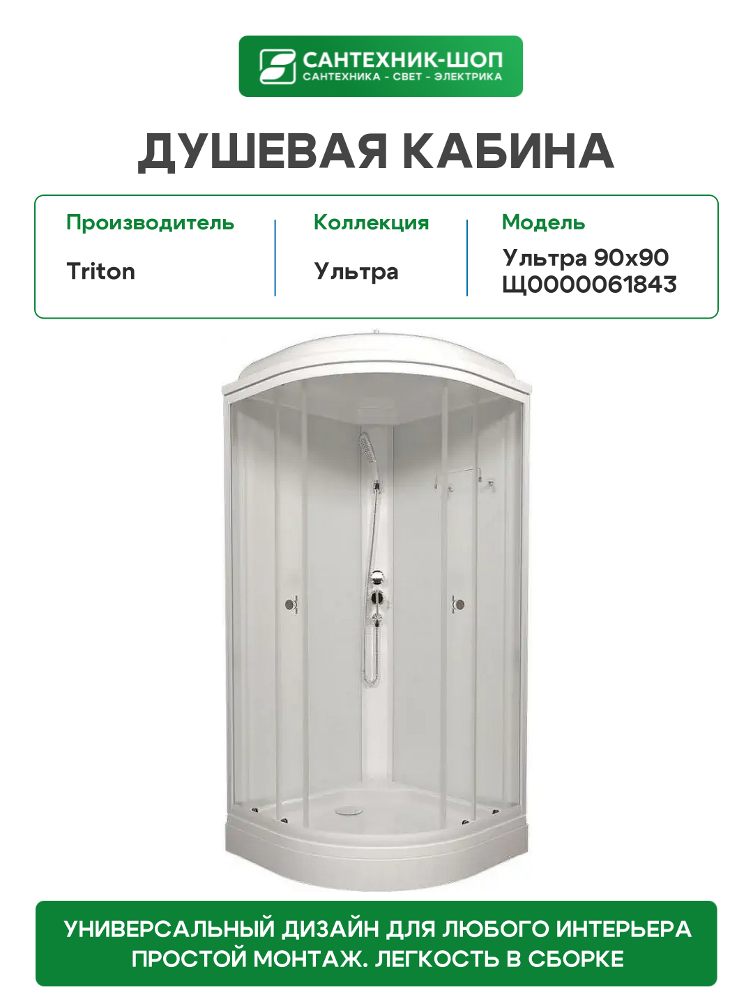 Душевая кабина Triton Ультра 90×90 Щ0000061843 без гидромассажа: сравнение цен, характеристики, фото, актуальное наличие и цены.