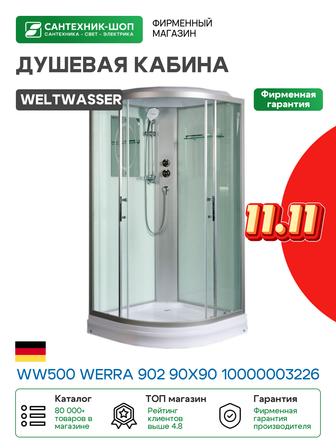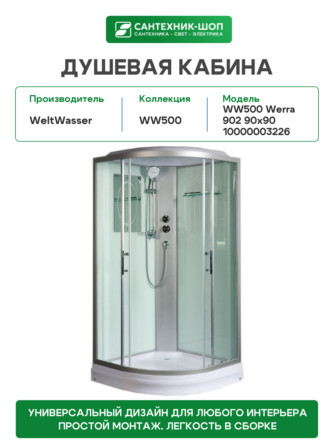 Душевая кабина WeltWasser WW500 Werra 902 90×90 10000003226 профиль Хром стекло прозрачное 90х90 Без гидромассажа хром: сравнение цен, характеристики, фото, актуальное наличие и цены.