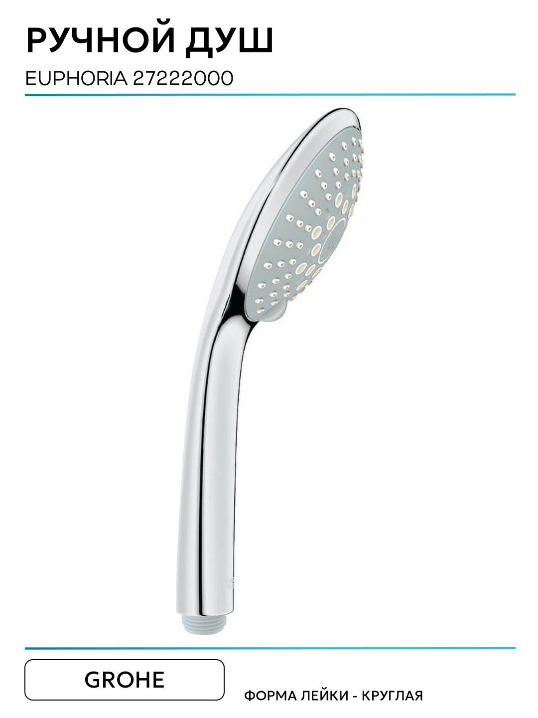 - Трехрежимный ручной душ (Rain, Champagne spray, SmartRain).