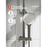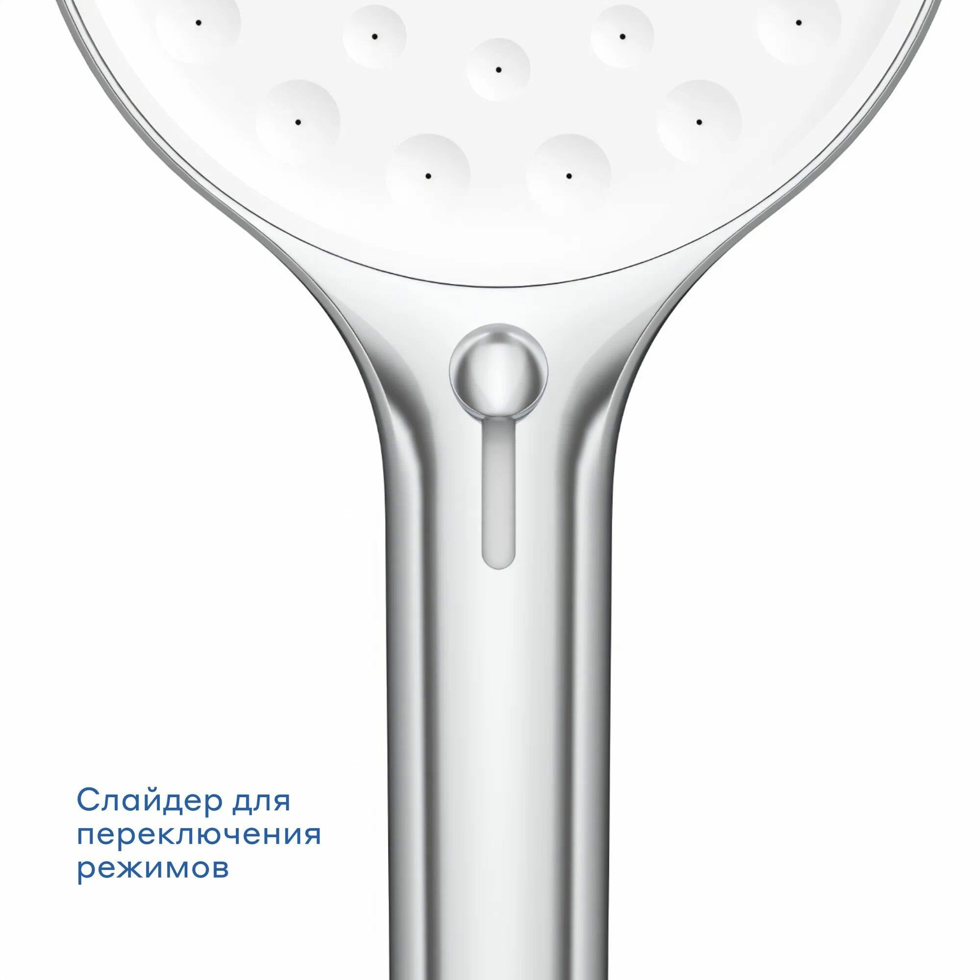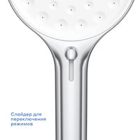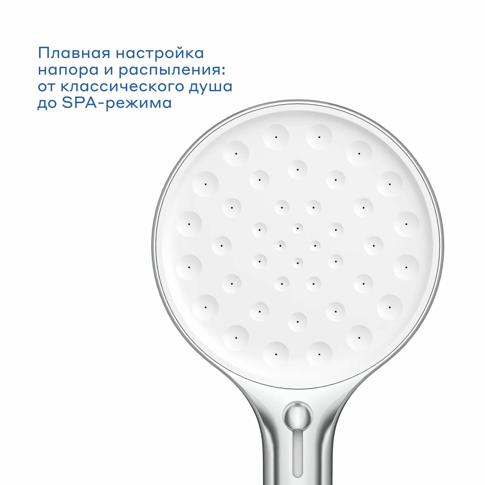 Душевая лейка Pragma Olako удобно управляется слайдером. С ним можно плавно и точно настроить напор и распыление: от классического душа до SPA-режима.