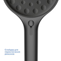 Душевая лейка Pragma Olako удобно управляется слайдером. С ним можно плавно и точно настроить напор и распыление: от классического душа до SPA-режима.