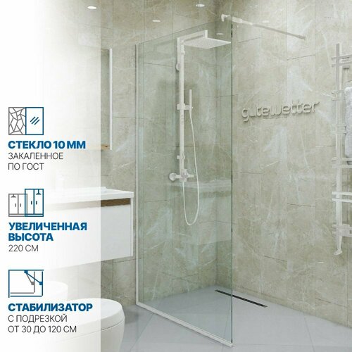 Душевая перегородка неподвижная односегментная GWMPGL010 производства фабрики GuteWetter выполнена из 10 мм закаленного стекла.