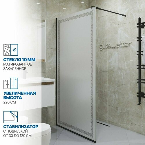 Душевая перегородка неподвижная односегментная GWMPGL010V производства фабрики GuteWetter выполнена из 10 мм закаленного стекла, рисунок матовый нанесен с помощью пескоструйной обработки и не прозрачен, с внутренней стороны стекло глянцевое без обработки пескострум, что облегчает уход за поверхностью стекла.