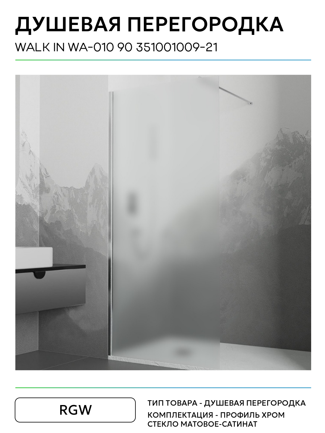 Купить Душевая перегородка RGW Walk In WA-010 90 351001009-21 профиль Хром стекло матовое-сатинат алюминий хром Германия с доставкой по всей России.