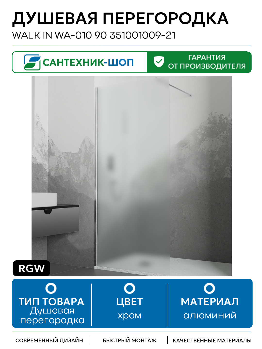 Душевая перегородка RGW Walk In WA-010 90 351001009-21 профиль Хром стекло матовое-сатинат алюминий хром Германия: сравнение цен, характеристики, фото, актуальное наличие и цены.
