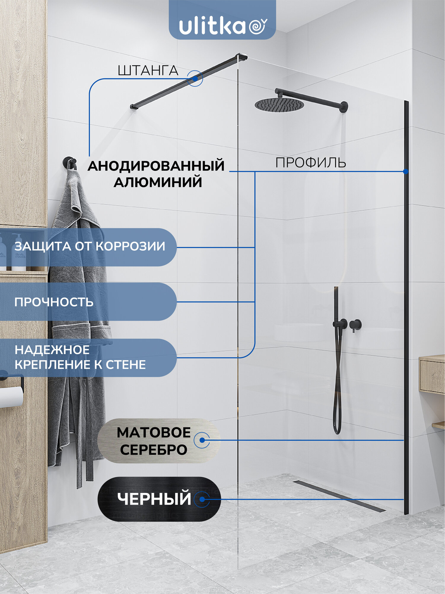 Уникальной особенностью данной модели является регулируемая штанга длиной 100 см, что позволяет легко адаптировать перегородку под ваши индивидуальные потребности. Минимально рекомендуемая длина штанги составляет 80 см, что делает установку максимально простой и удобной. Благодаря прозрачному стеклу, ваше пространство будет выглядеть более светлым и просторным, что особенно актуально для небольших ванных комнат.