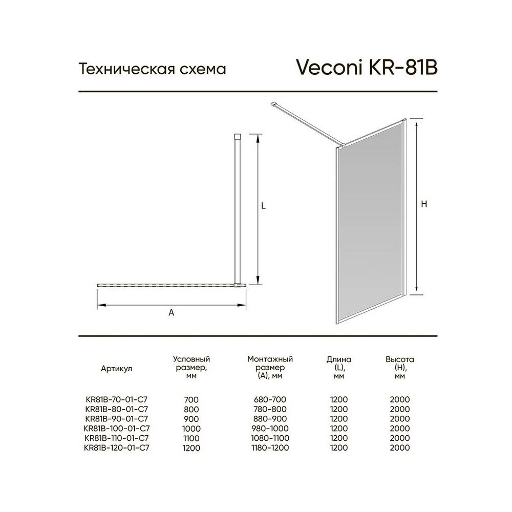 Купить Душевая перегородка Veconi KR81B-70-01-C8 с доставкой по всей России.