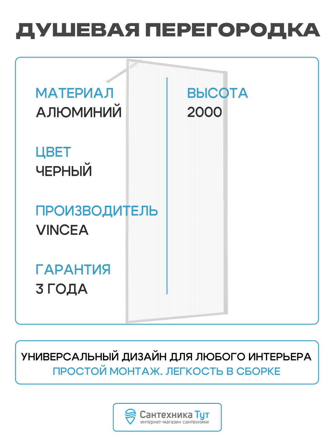 Душевая перегородка Vincea Walk-In VSW-1HP100FLB - это стильное, функциональное и надежное решение для вашей ванной комнаты.