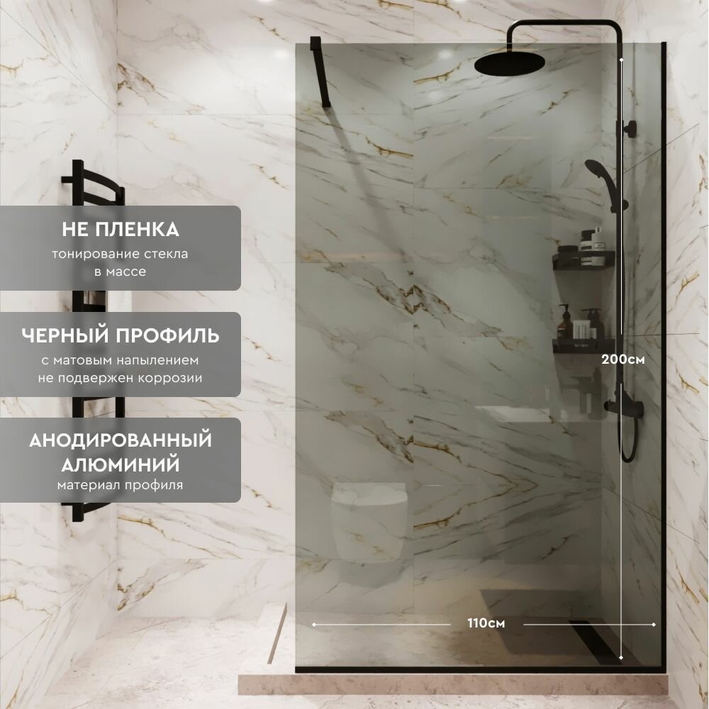 Купить Душевая перегородка Walk In MEBELVANN 1100×2000 черный профиль тонированное стекло 8 мм с доставкой по всей России.
