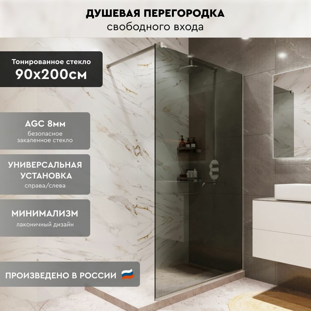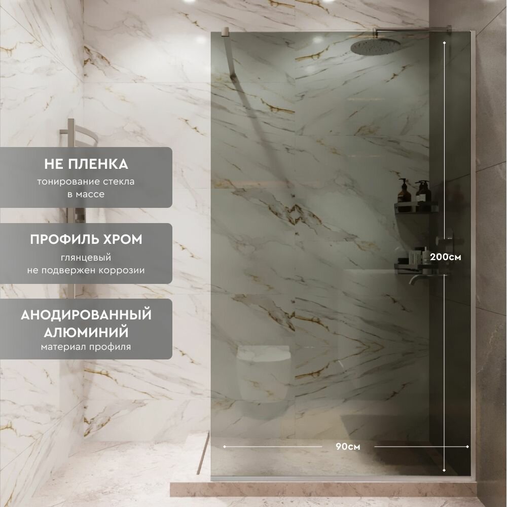 Купить Душевая перегородка Walk In MEBELVANN 900×2000 профиль хром тонированное стекло 8 мм с доставкой по всей России.