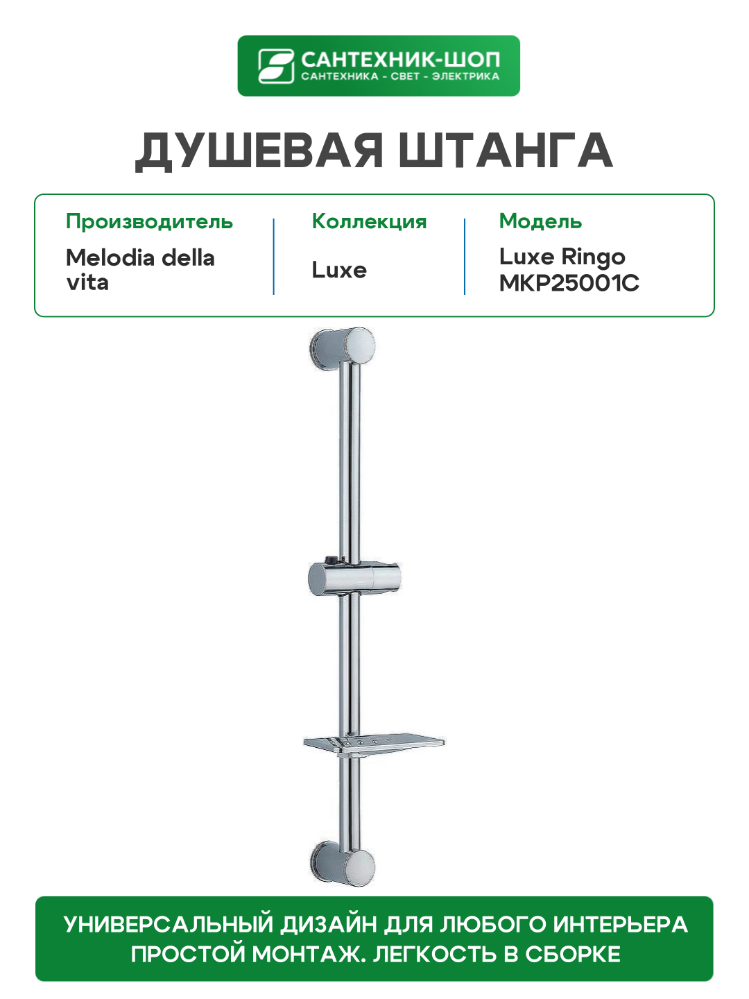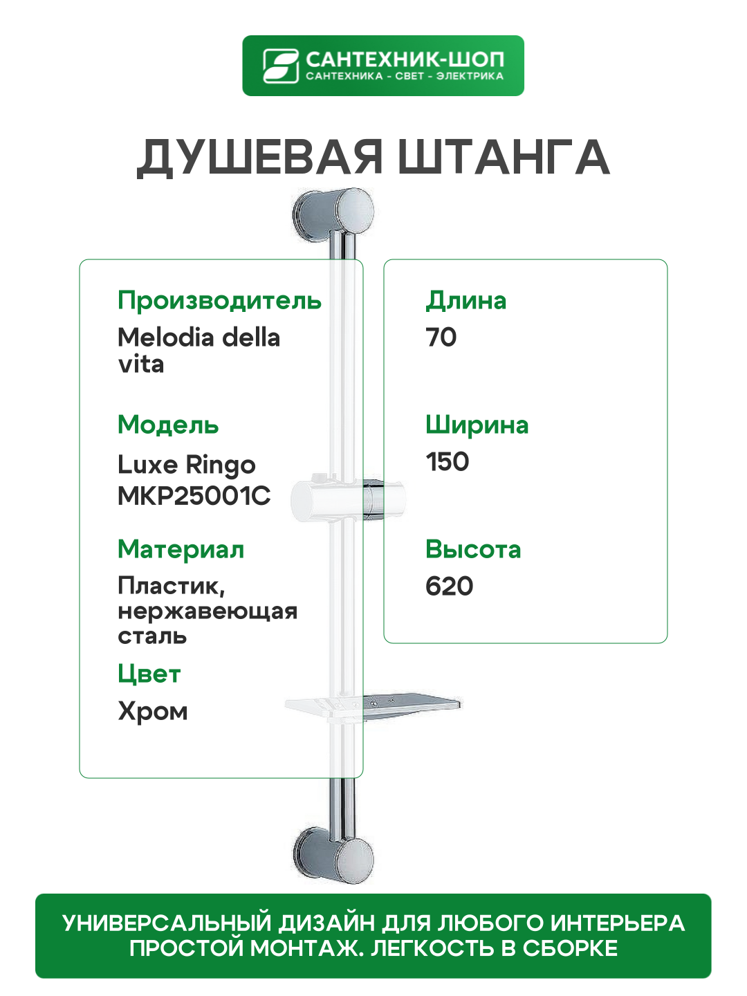 Купить Душевая штанга Melodia della vita Luxe Ringo MKP25001C Хром с доставкой по всей России. Душевая штанга Melodia della vita Luxe Ringo MKP25001C Хром: сравнение цен, характеристики, фото, актуальное наличие и цены.