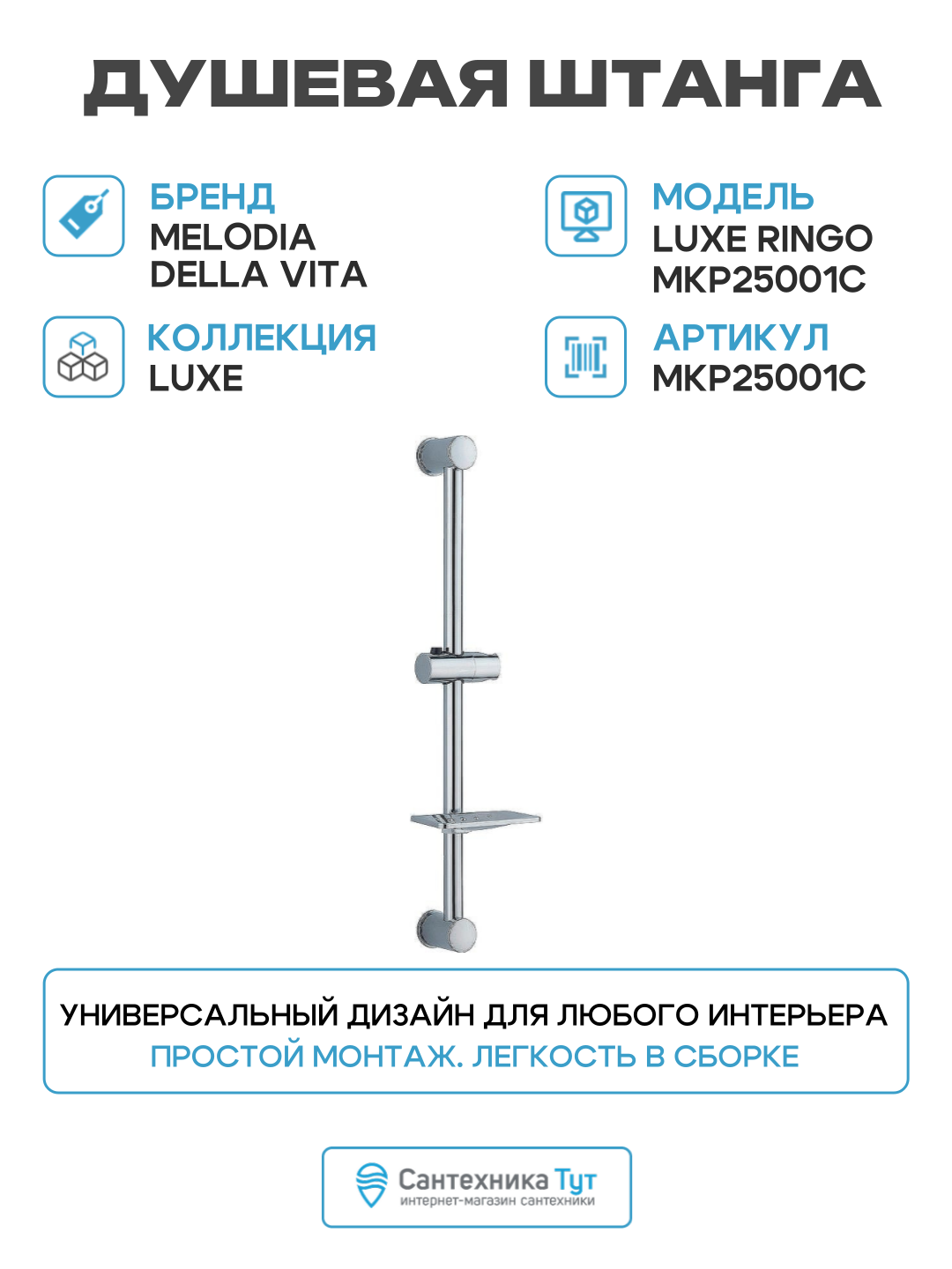 Душевая штанга Melodia della vita Luxe Ringo MKP25001C Хром, современный стиль: сравнение цен, характеристики, фото, актуальное наличие и цены.