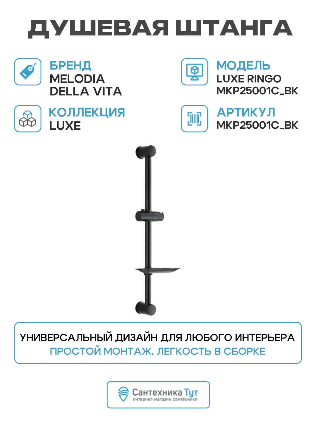 Душевая штанга Melodia della vita Luxe Ringo MKP25001C_bk Черная матовая, современный стиль: сравнение цен, характеристики, фото, актуальное наличие и цены.