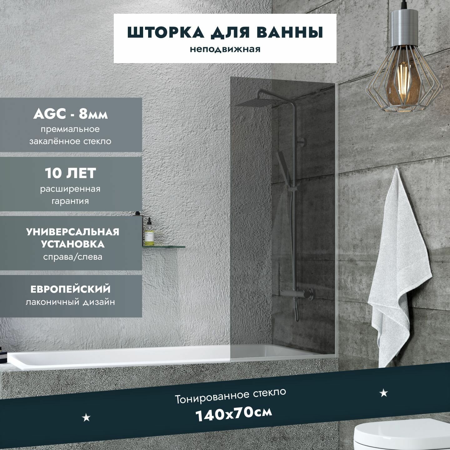 Стеклянная перегородка (шторка, ширма) на борт ванны 140х70 см, неподвижная, профиль хром, тонированное стекло: сравнение цен, характеристики, фото, актуальное наличие и цены.