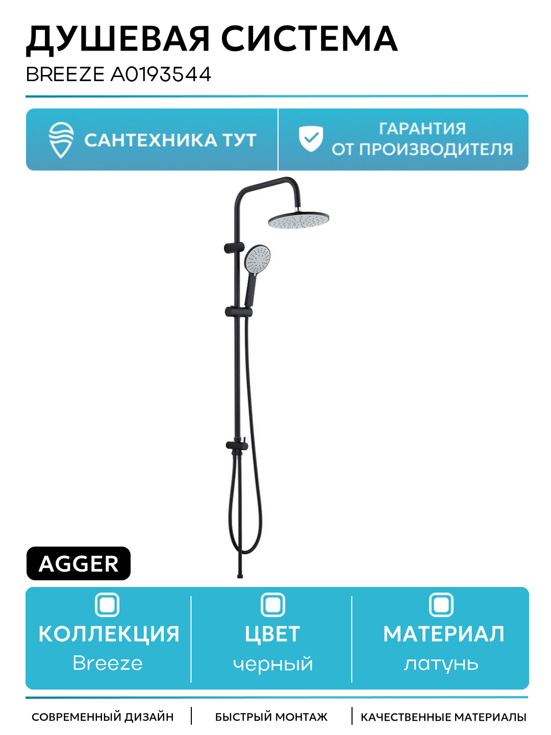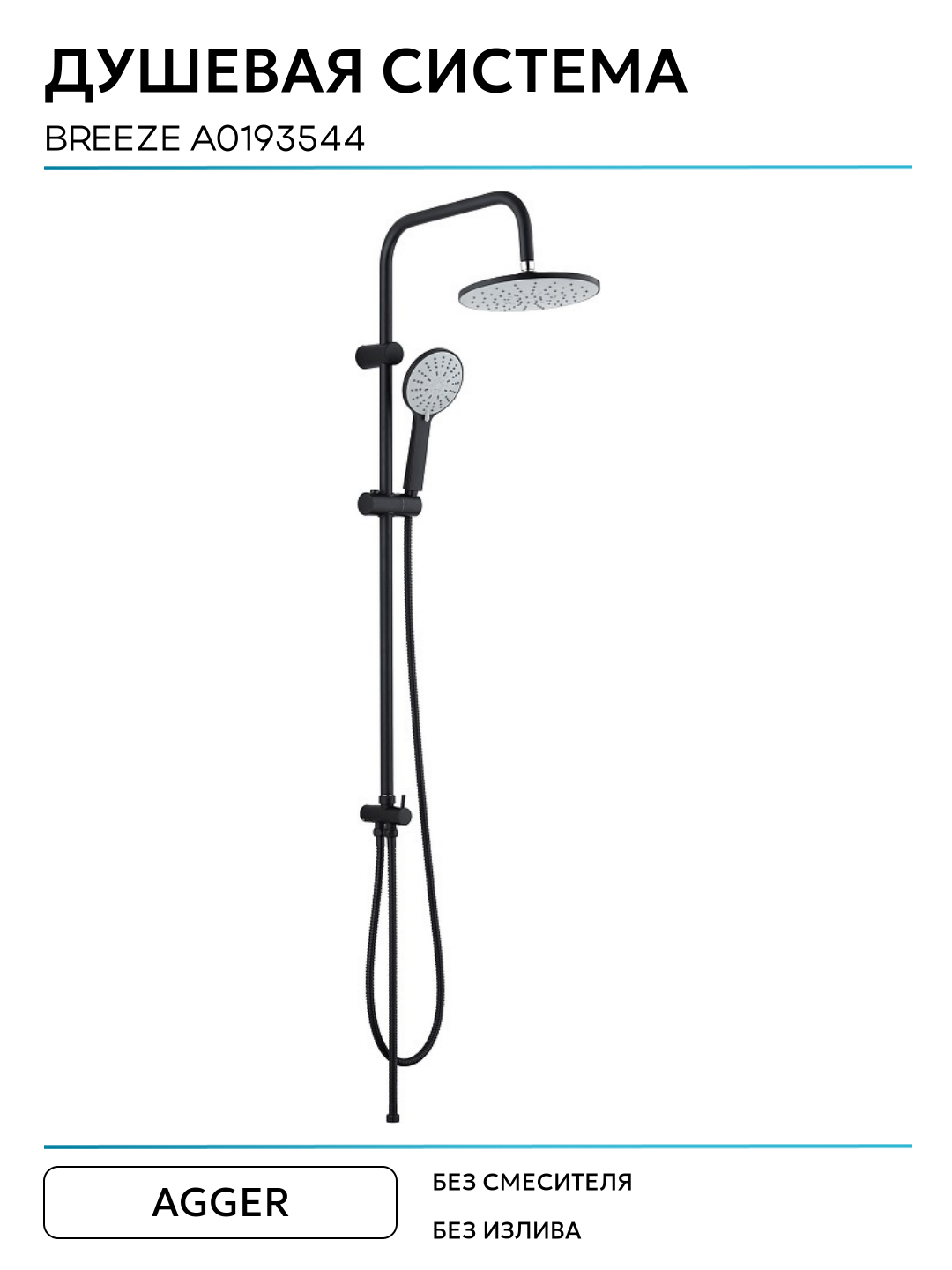 Душевая система Agger Breeze A0193544 Черная латунь на стену без излива без смесителя: сравнение цен, характеристики, фото, актуальное наличие и цены.