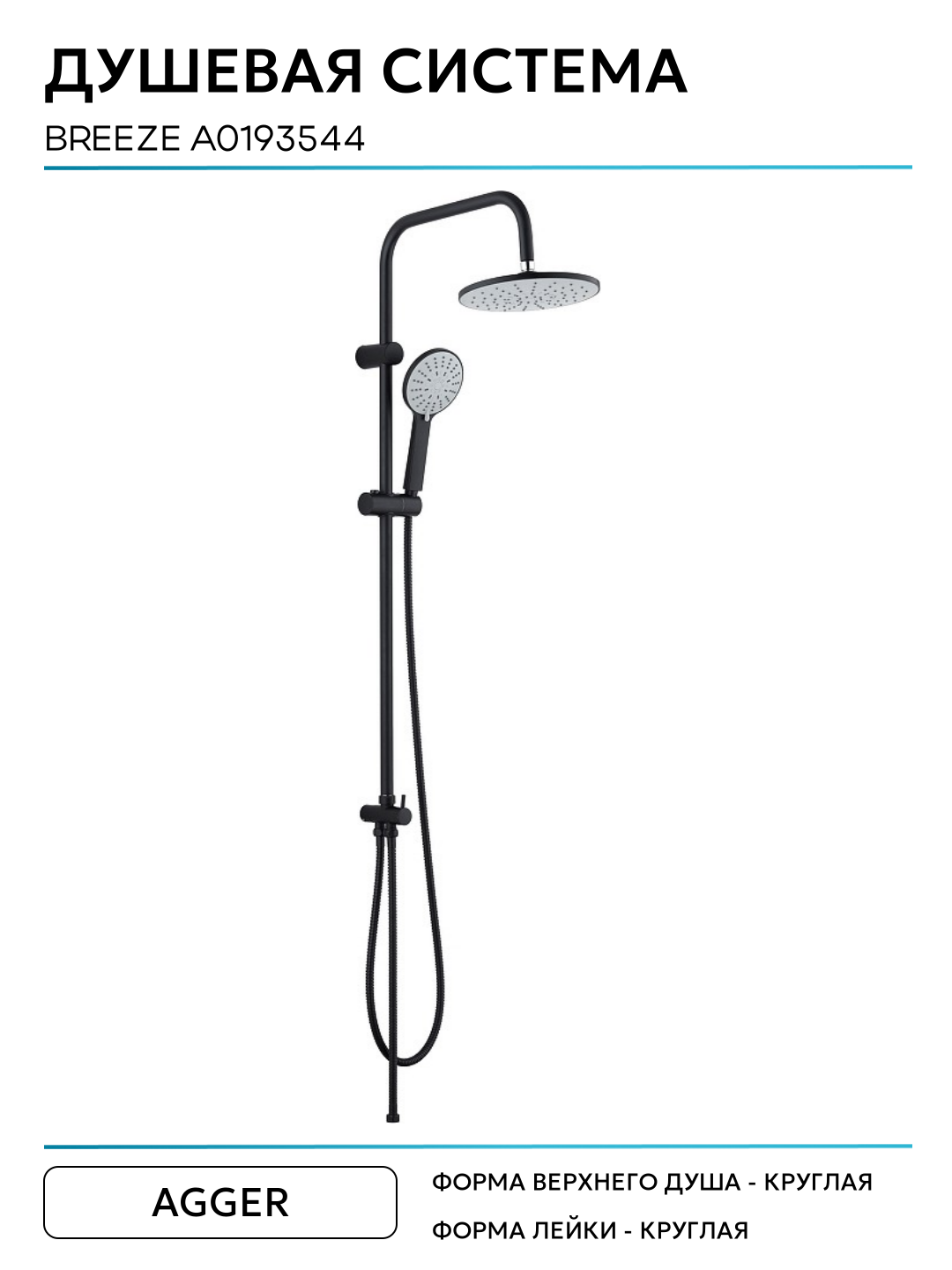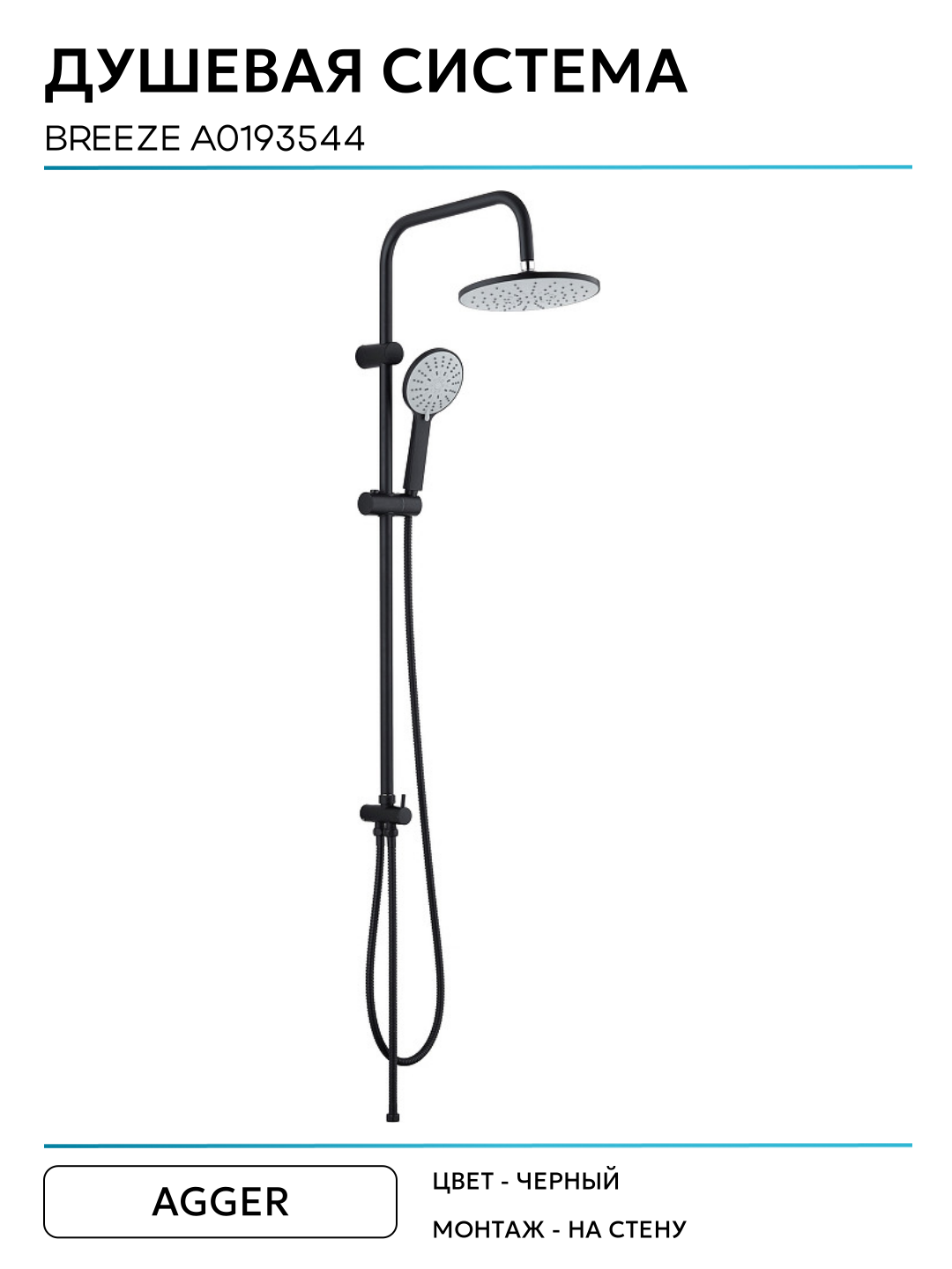 Купить Душевая система Agger Breeze A0193544 Черная латунь на стену без излива без смесителя с доставкой по всей России.