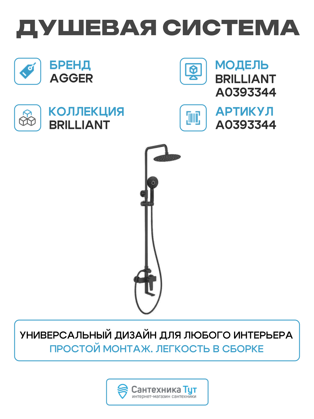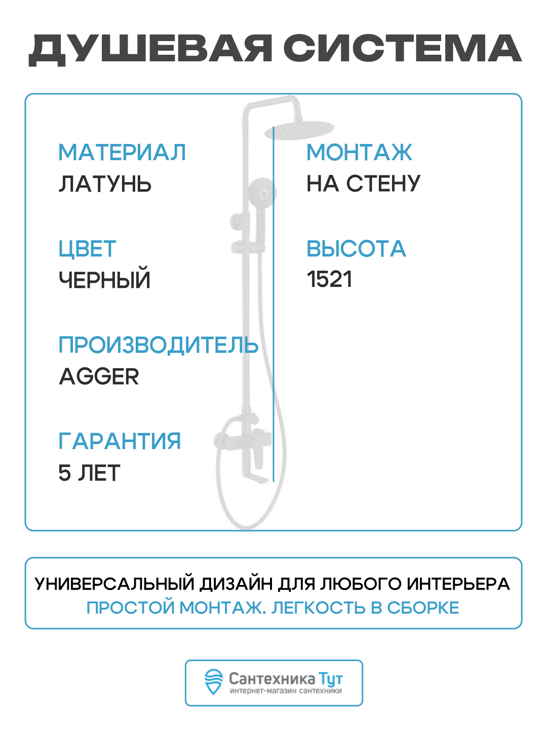Купить Душевая система Agger Brilliant A0393344 Черная матовая латунь на стену с изливом со смесителем с доставкой по всей России. Душевая система Agger Brilliant A0393344 Черная матовая латунь на стену с изливом со смесителем: сравнение цен, характеристики, фото, актуальное наличие и цены.