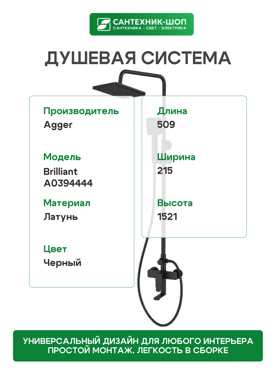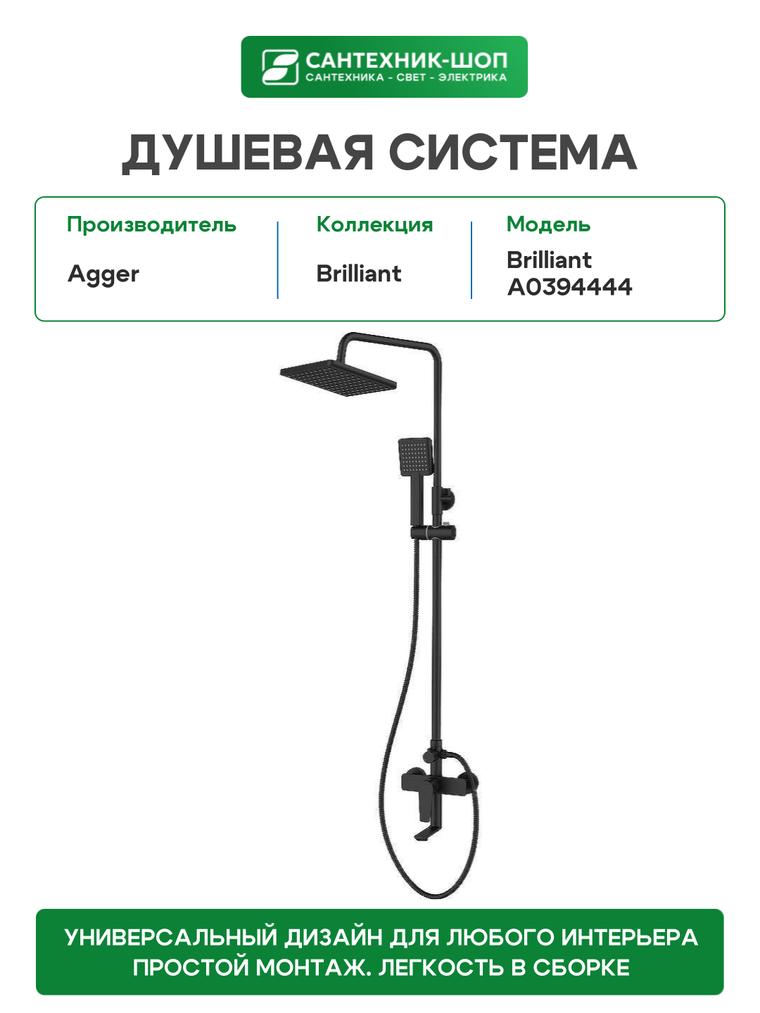 Душевая система Agger Brilliant A0394444 Черная матовая латунь на стену: сравнение цен, характеристики, фото, актуальное наличие и цены.