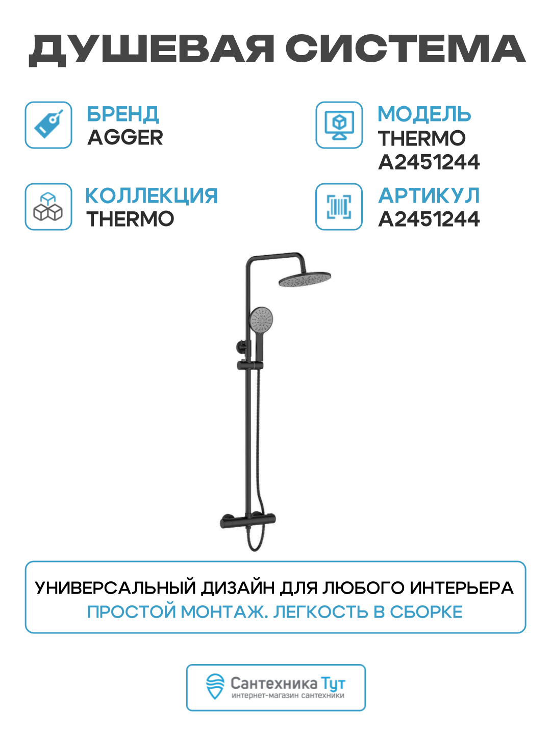 Купить Душевая система Agger Thermo A2451244 Черная латунь на стену без излива со смесителем с доставкой по всей России. Душевая система Agger Thermo A2451244 Черная латунь на стену без излива со смесителем: сравнение цен, характеристики, фото, актуальное наличие и цены.