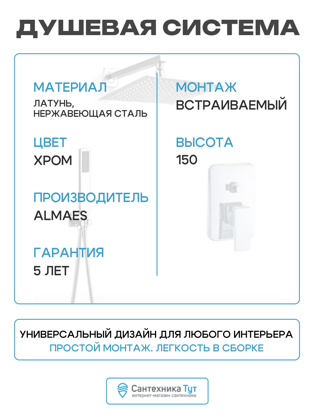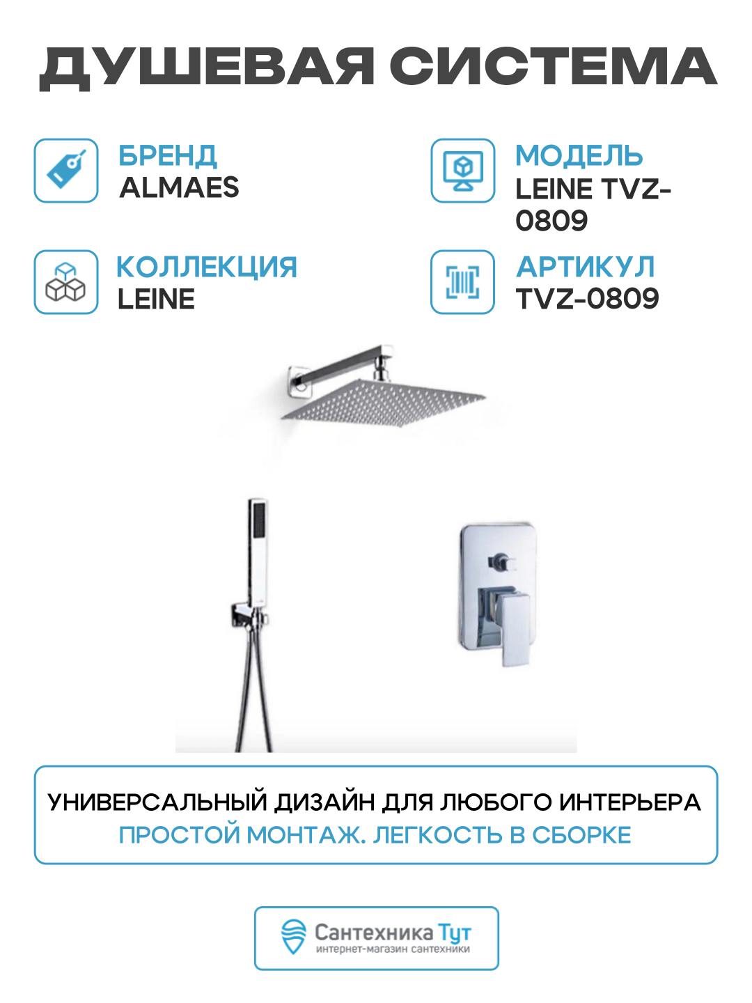 Купить Душевая система ALMAes Leine TVZ-0809 Хром латунь встраиваемый без излива со смесителем с доставкой по всей России. Душевая система ALMAes Leine TVZ-0809 Хром латунь встраиваемый без излива со смесителем: сравнение цен, характеристики, фото, актуальное наличие и цены.