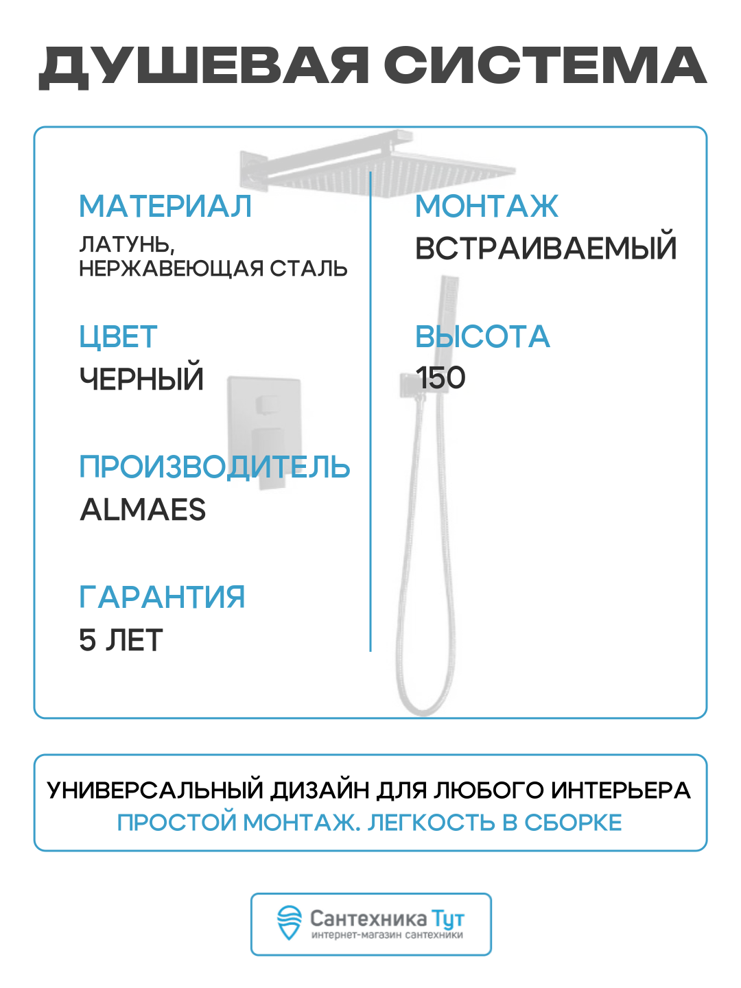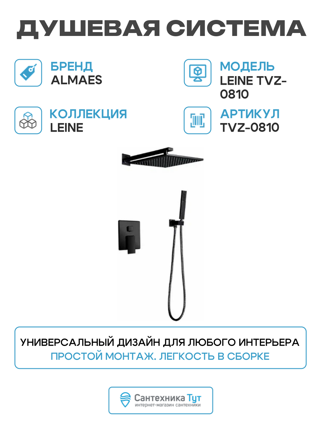Купить Душевая система ALMAes Leine TVZ-0810 Черная матовая латунь встраиваемый без излива со смесителем с доставкой по всей России. Душевая система ALMAes Leine TVZ-0810 Черная матовая латунь встраиваемый без излива со смесителем: сравнение цен, характеристики, фото, актуальное наличие и цены.