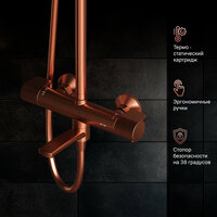 Душевая система AM.PM Brava с тропическим душем и смесителем с термостатом, поворотный складной излив, розовое золото