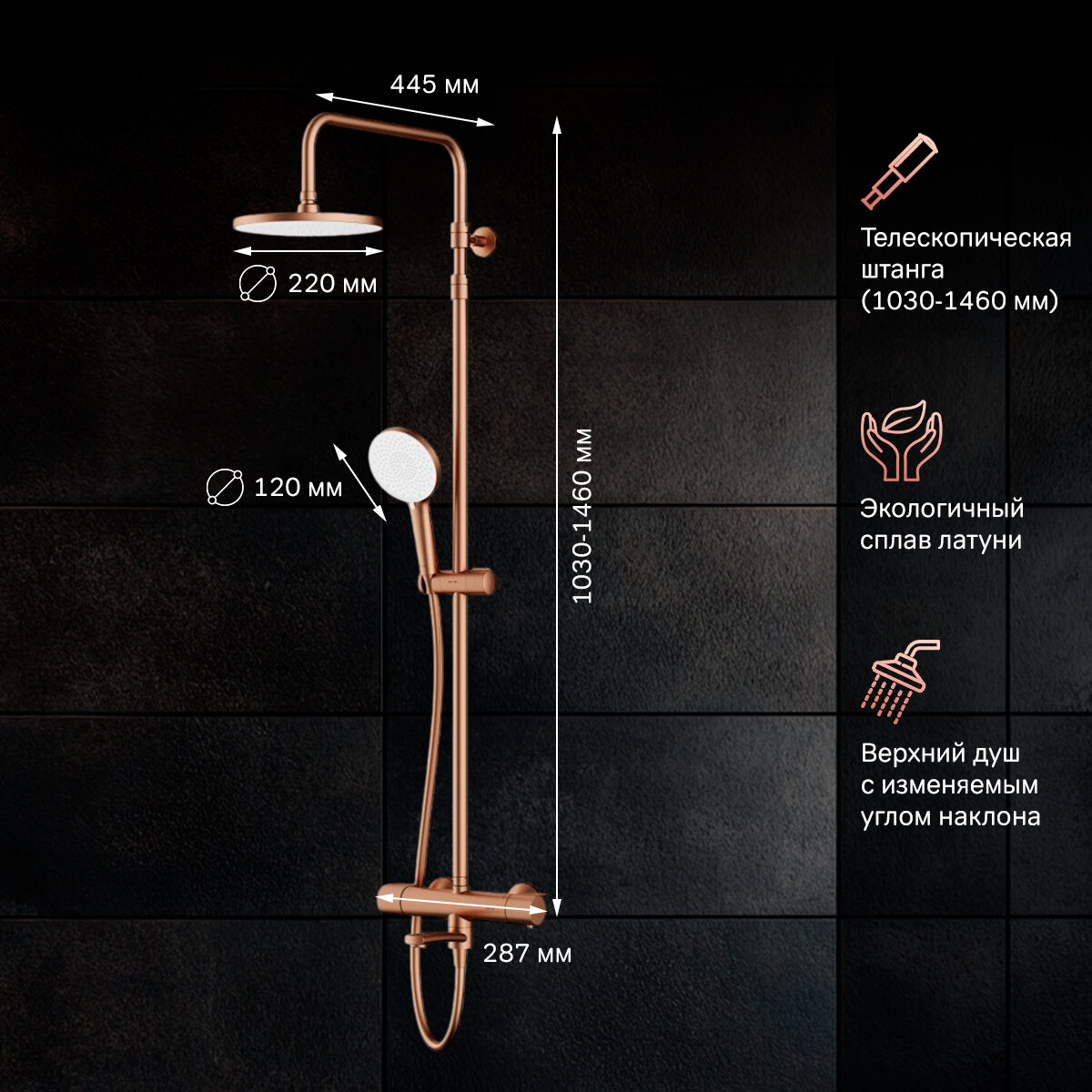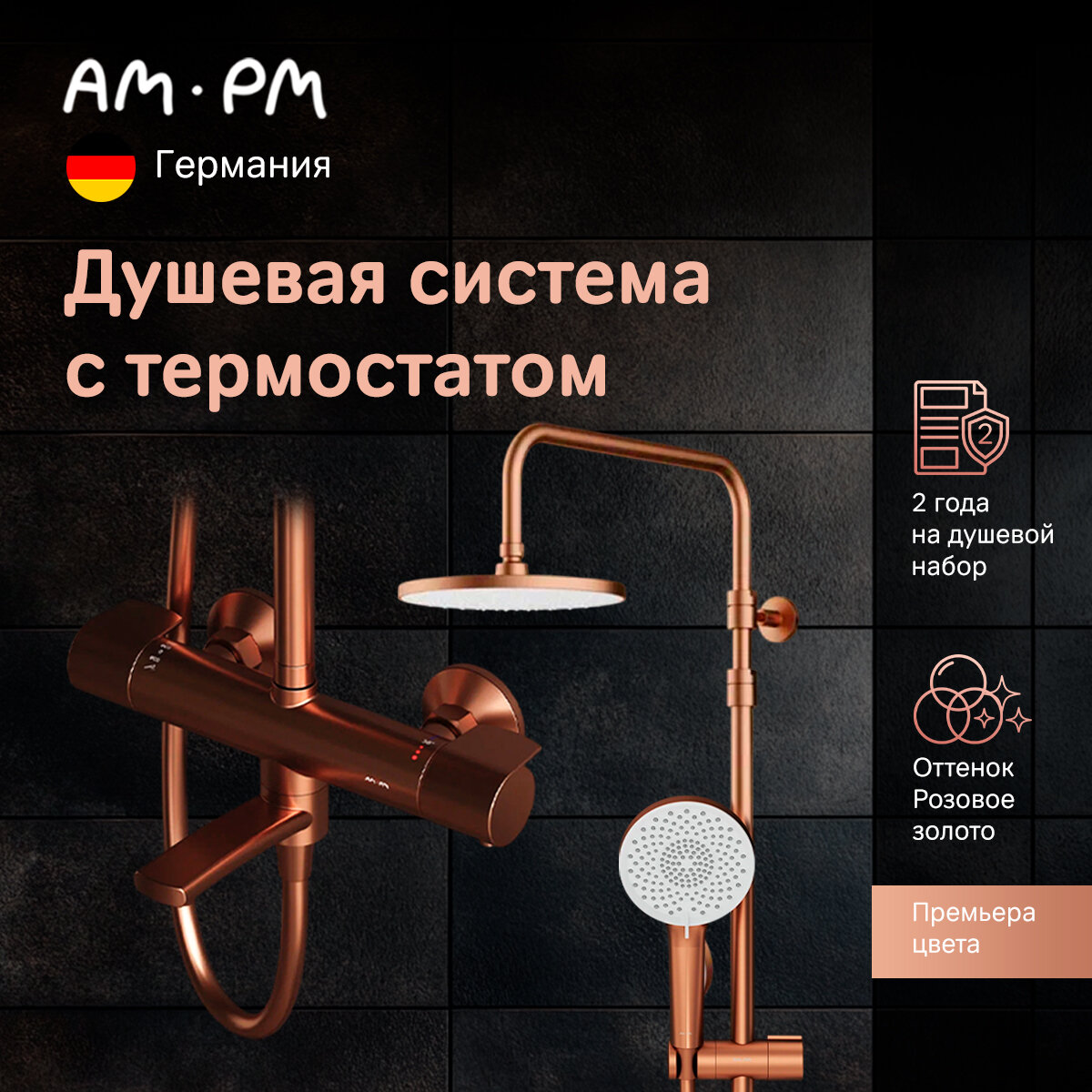 Душевая система AM.PM Brava с тропическим душем и смесителем с термостатом, поворотный складной излив, розовое золото: сравнение цен, характеристики, фото, актуальное наличие и цены.