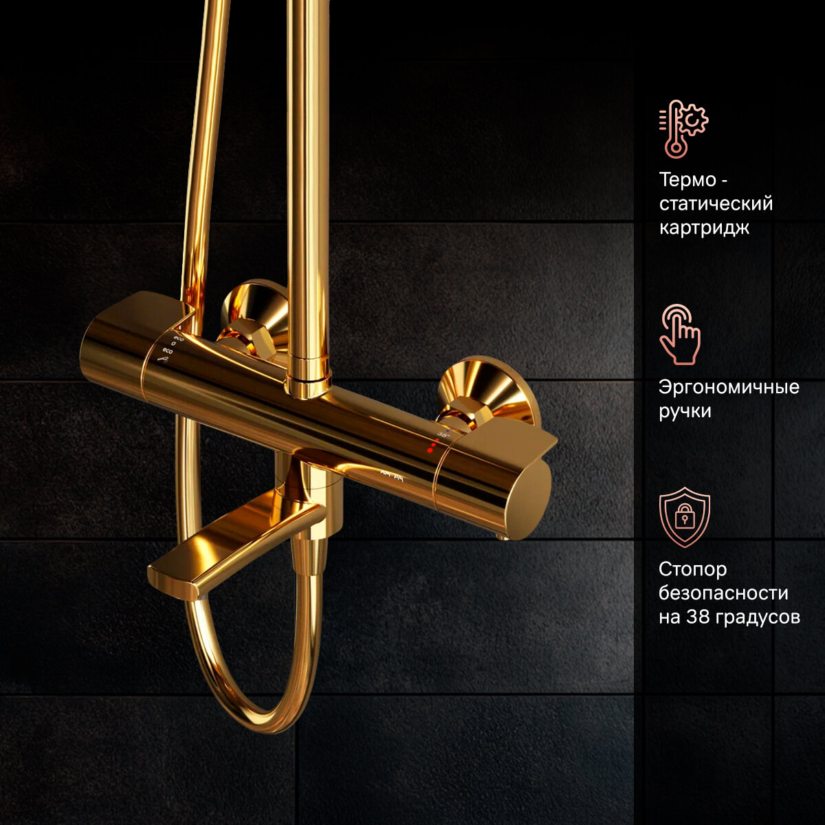 Душевая система с термостатическим смесителем AM. PM Brava — это современное и безопасное решение для вашей ванной комнаты. В ней сочетаются тропический душ, удобный ручной душ, термостат, телескопическая штанга и смеситель с изливом — всё, что нужно для комфорта и уюта каждый день.