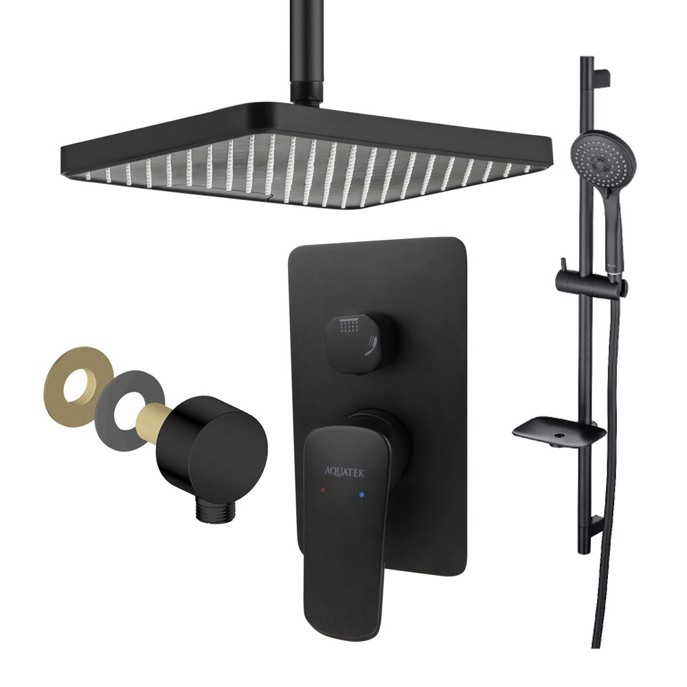 Душевая система Aquatek Лира AQ1472MB, встраиваемая, тропический дождь, черная