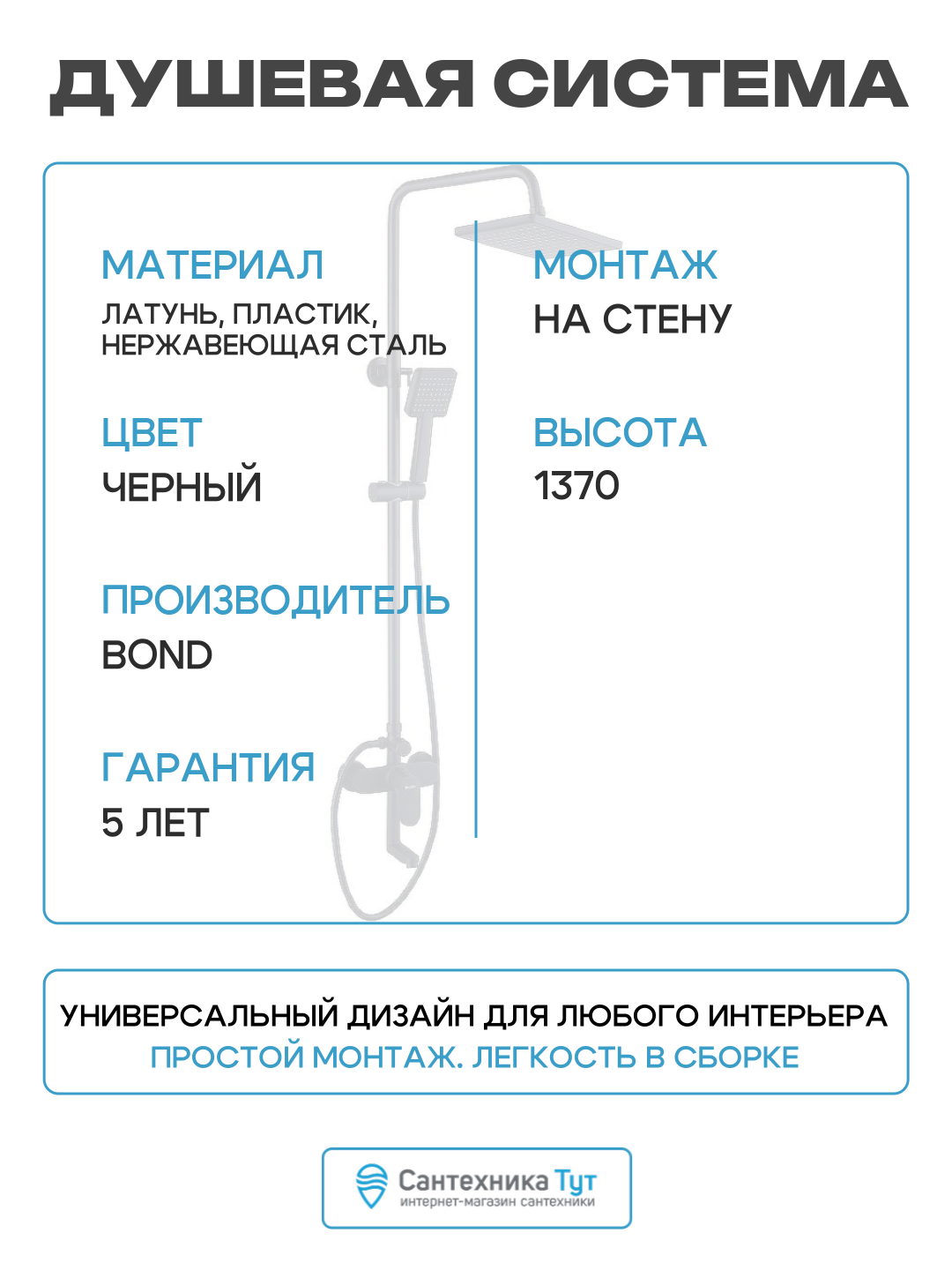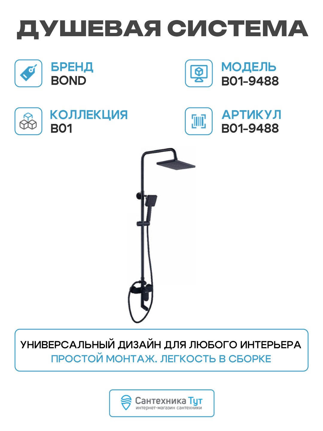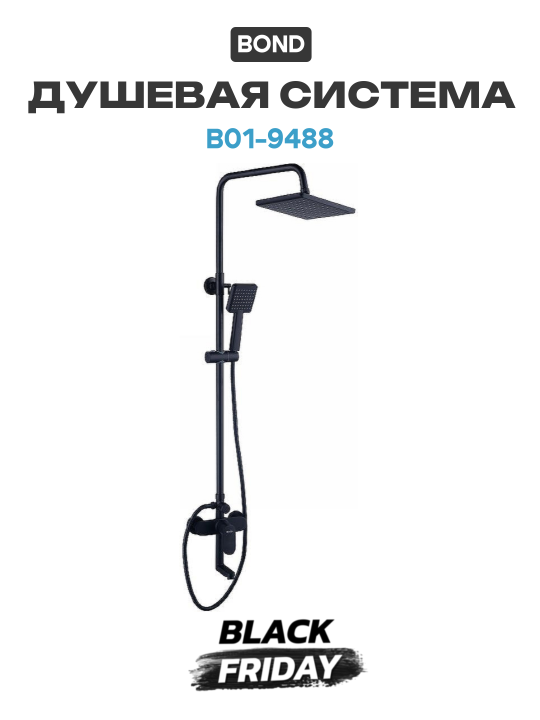 Купить Душевая система Bond B01-9488 Черная матовая латунь на стену с изливом со смесителем с доставкой по всей России. Душевая система Bond B01-9488 Черная матовая латунь на стену с изливом со смесителем: сравнение цен, характеристики, фото, актуальное наличие и цены.