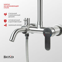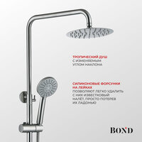 Душевая система BOND Smart B63-9100 с тропическим душем и смесителем с изливом представляет собой стильное и функциональное решение для современной ванной комнаты или душевой.