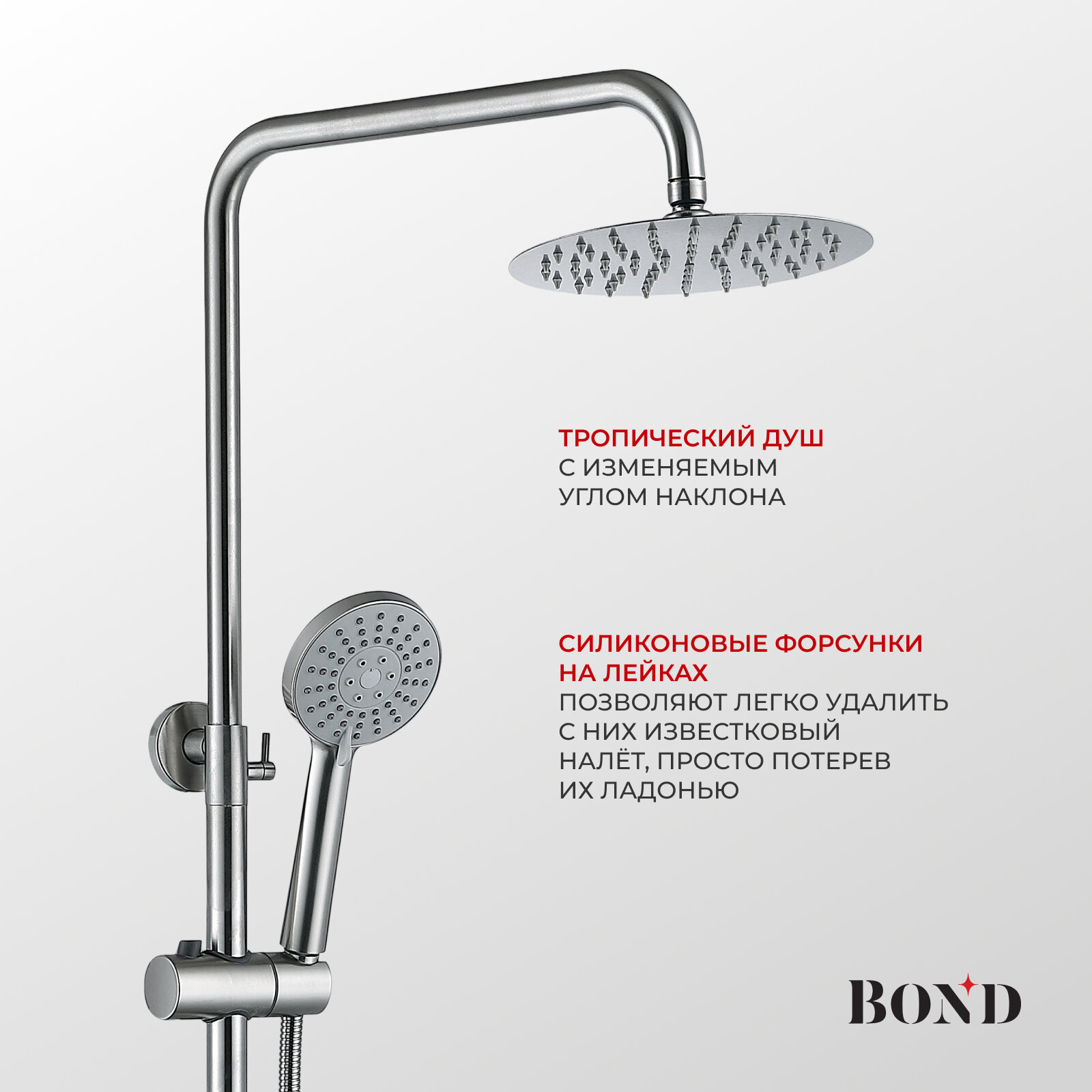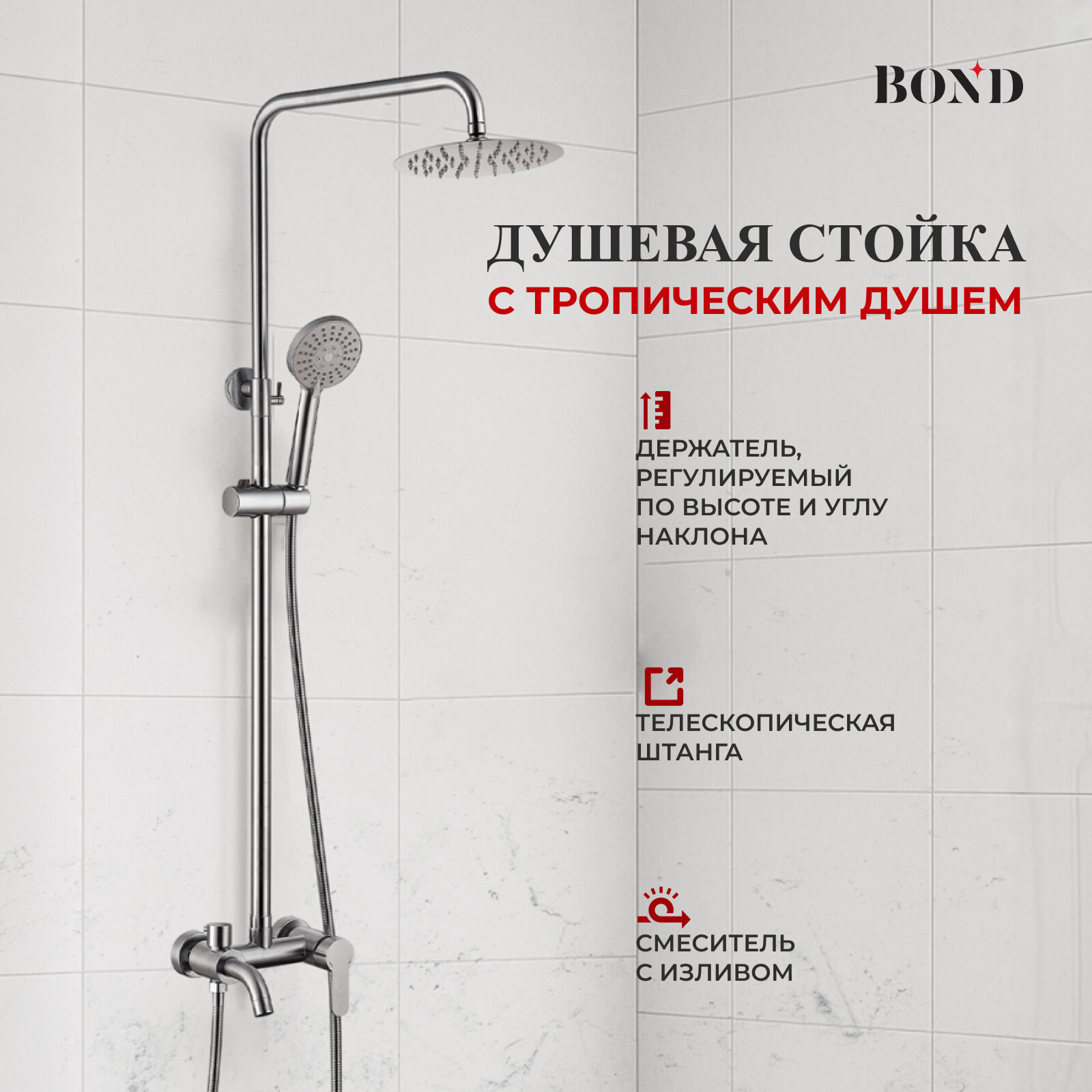 Купить Душевая система BOND B63-9100 с тропическим душем и смесителем с изливом с доставкой по всей России. Душевая система BOND B63-9100 с тропическим душем и смесителем с изливом: сравнение цен, характеристики, фото, актуальное наличие и цены.