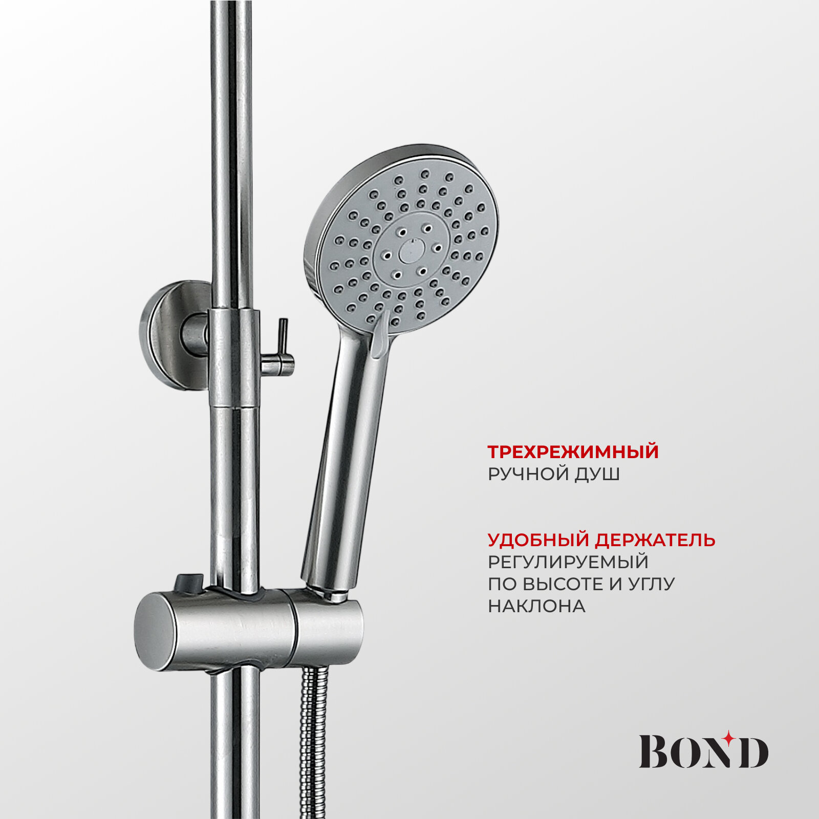 Душевая система BOND Smart B63-9100 с тропическим душем и смесителем с изливом – это комфорт, удобство и практичность, которые станут незаменимым элементом вашей ванной комнаты или душевой.