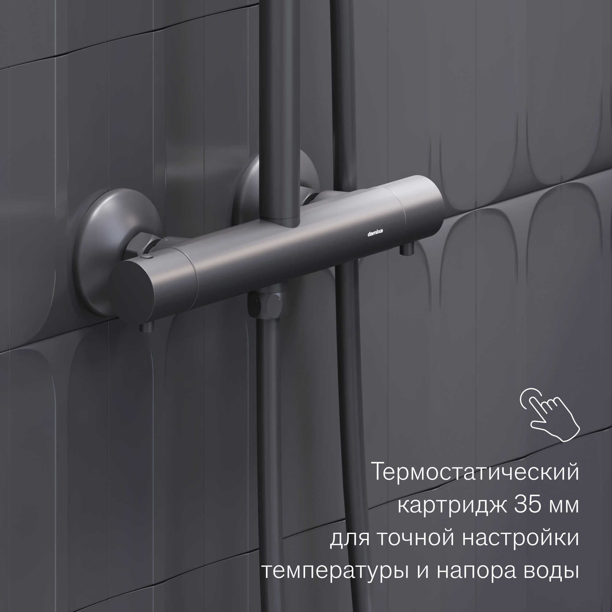 Купить Душевая система с тропическим душем Damixa Jupiter черный, смеситель с термостатом, телескоп. штанга, без излива с доставкой по всей России. Душевая система с тропическим душем Damixa Jupiter черный, смеситель с термостатом, телескоп. штанга, без излива: сравнение цен, характеристики, фото, актуальное наличие и цены.
