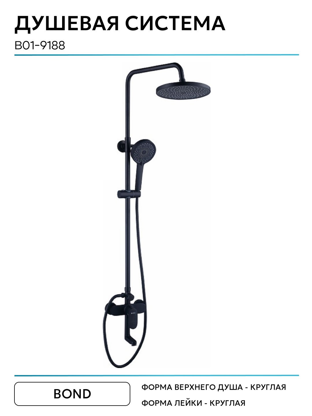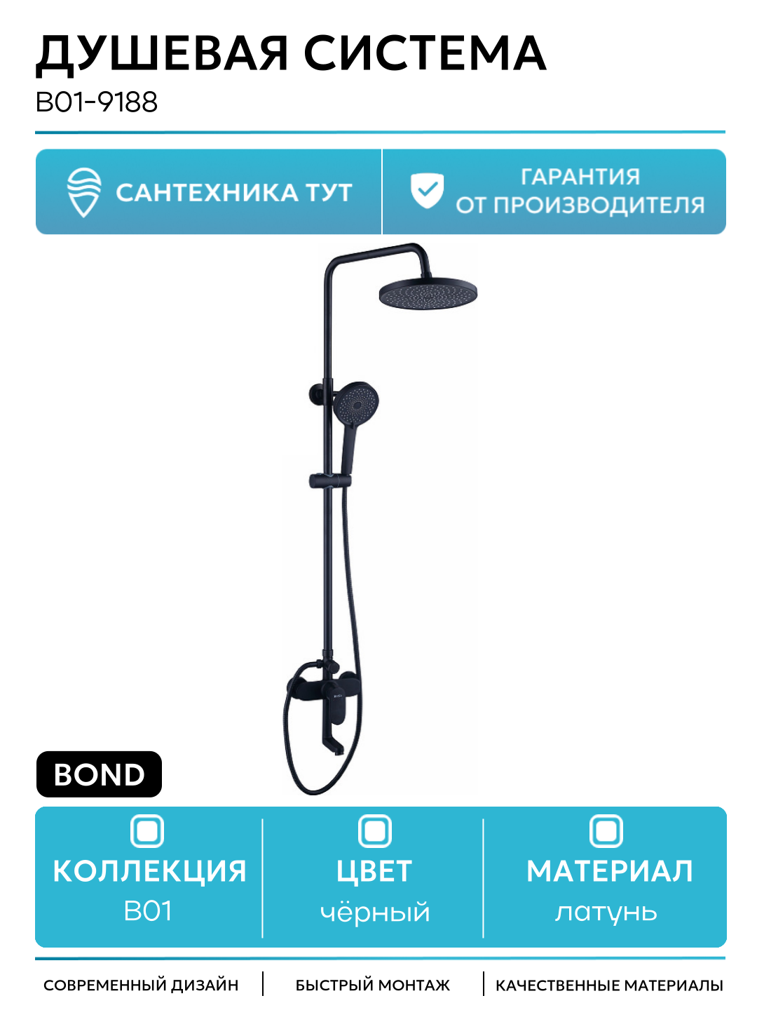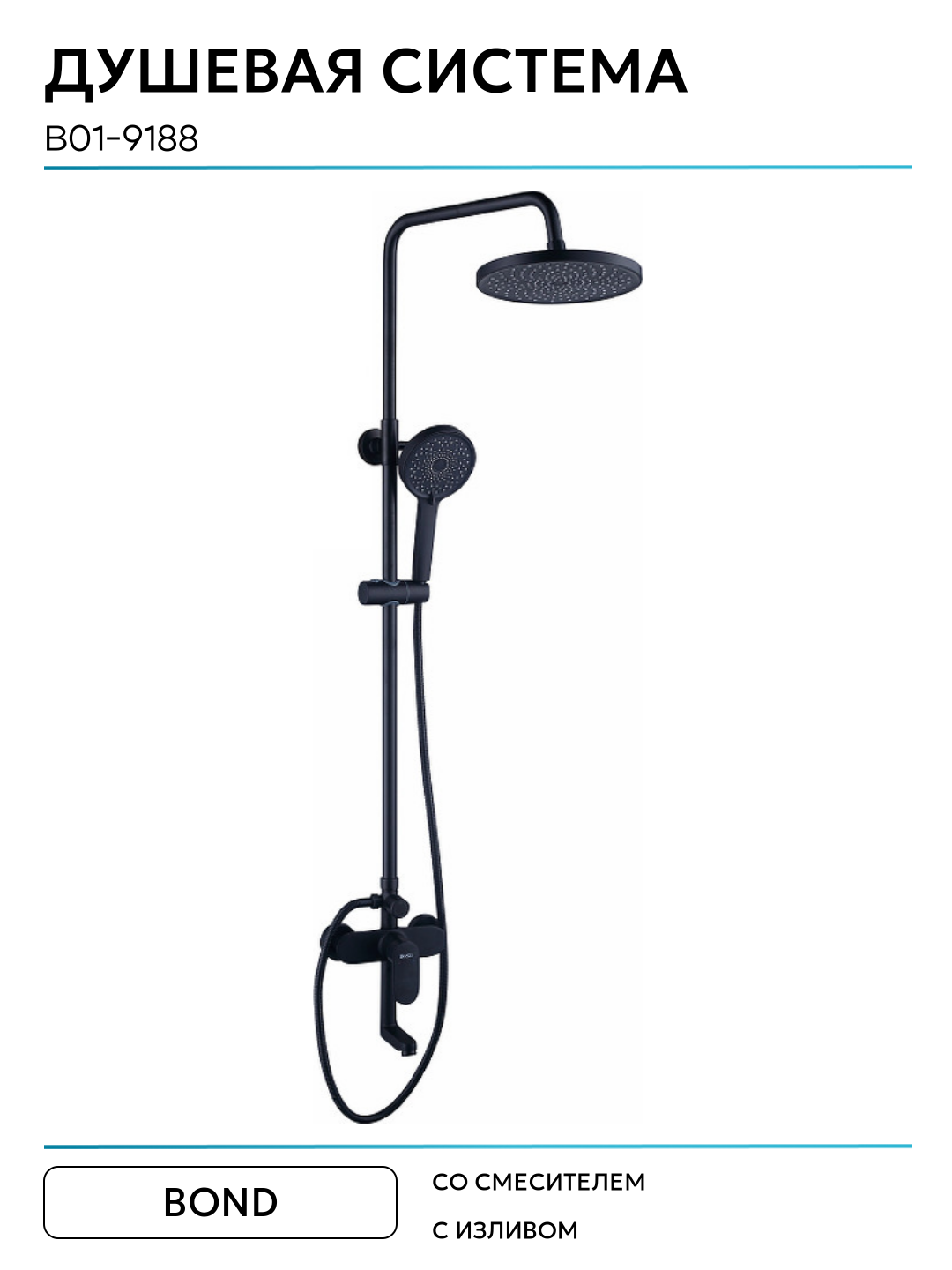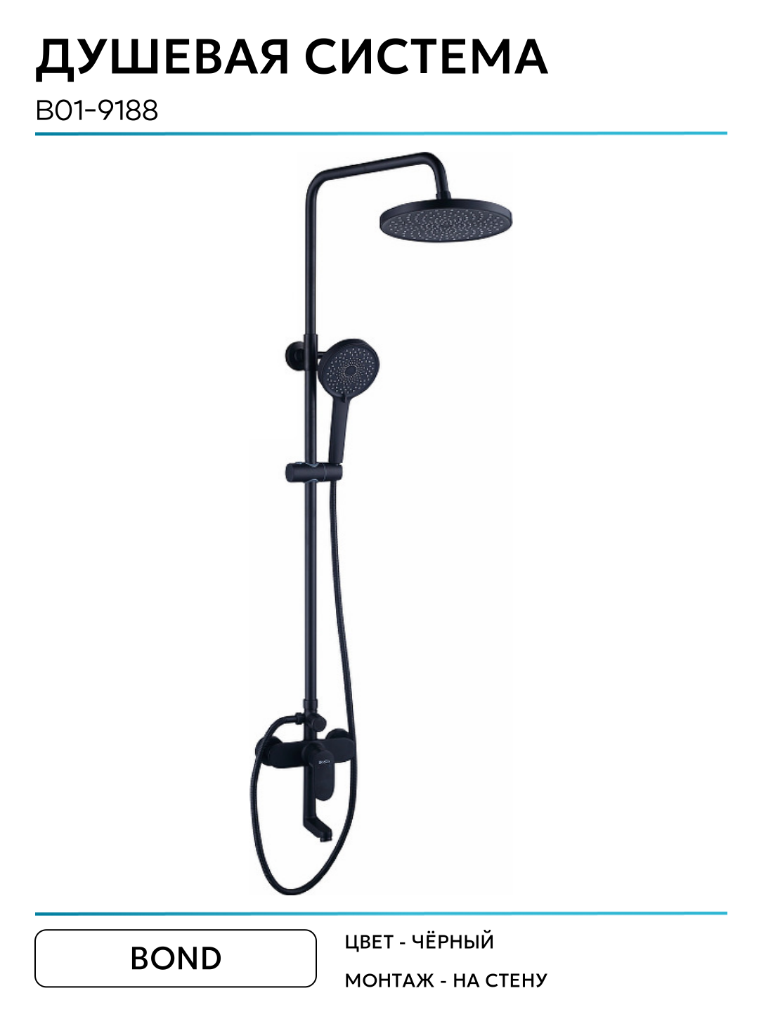 Душевая система Bond B01-9188 Черная матовая латунь на стену с изливом со смесителем: сравнение цен, характеристики, фото, актуальное наличие и цены.