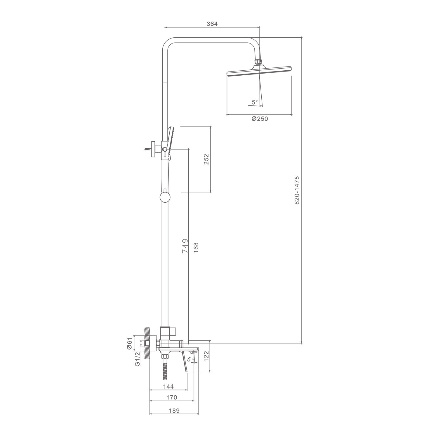 Душевая система для ванны Splenka S04.24 , латунь в цвете хром