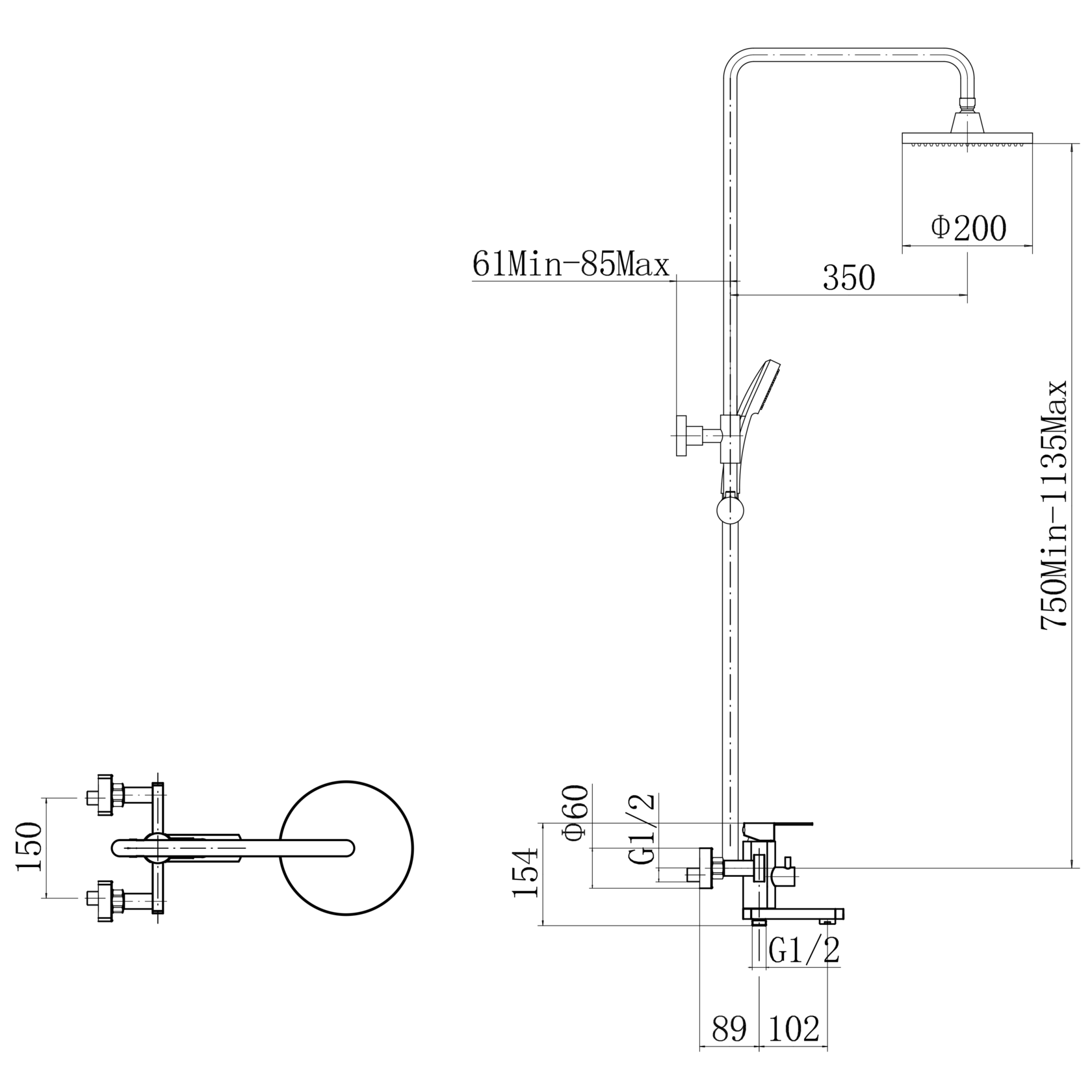 Душевая стойка Gappo G2499-39 оружейная сталь, покрытие PVD, латунь, верхний душ с тремя режимами