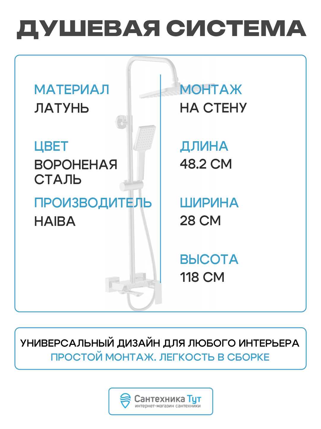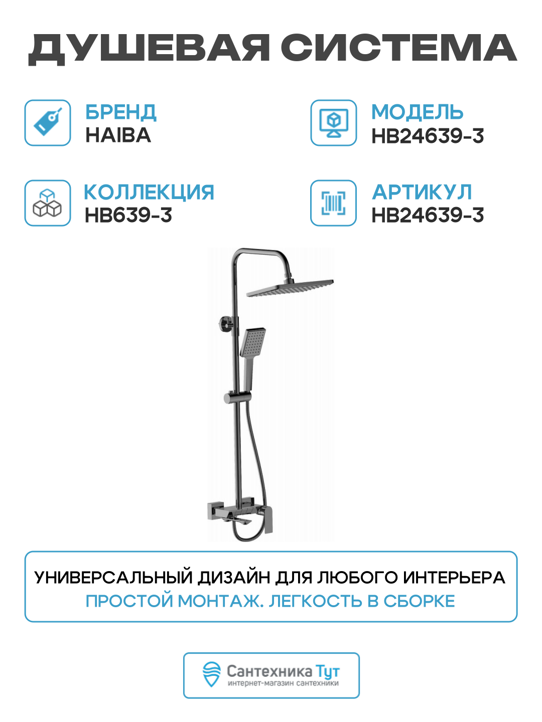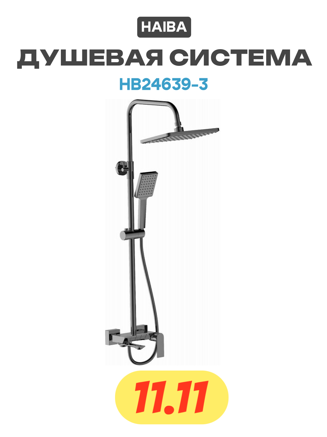 Душевая система Haiba HB24639-3, тропический душ, латунь, оружейная сталь: сравнение цен, характеристики, фото, актуальное наличие и цены.